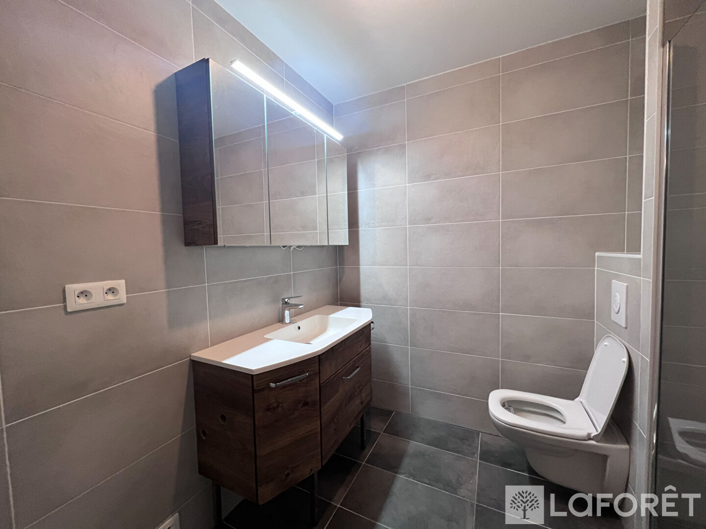 L'appartement comprend également une belle salle d'eau de 4,70 m², équipée d'une douche à l'italienne et de WC.