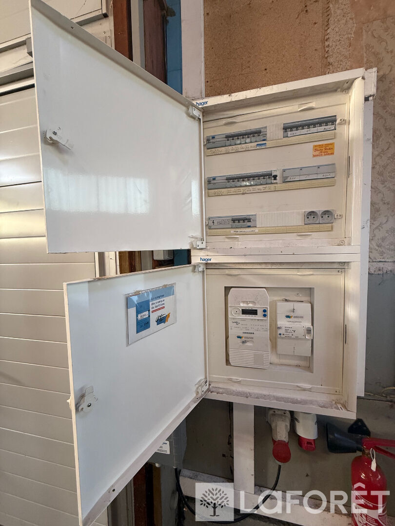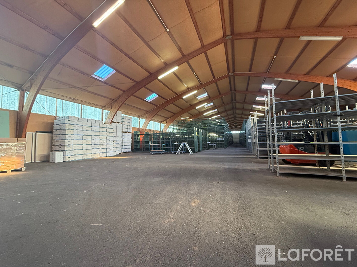 Le bâtiment, à ossature bois, dispose d'un hall traversant équipé de deux portes sectionnelles électriques positionnées en façade et en fond, facilitant la circulation des véhicules et des marchandises. Cette configuration permettrait éventuellement de diviser le local en deux lots distincts, selon les besoins du futur occupant.
