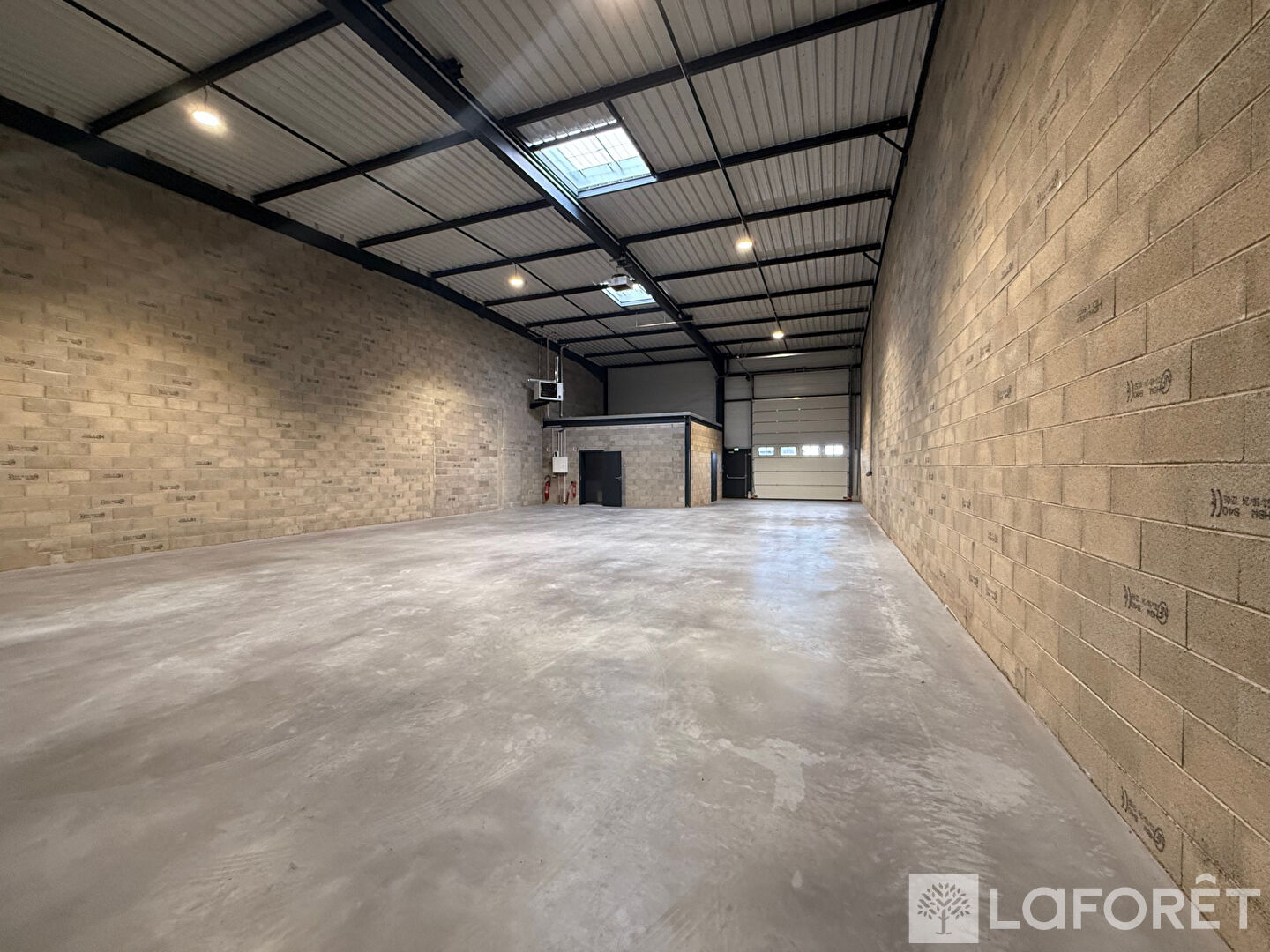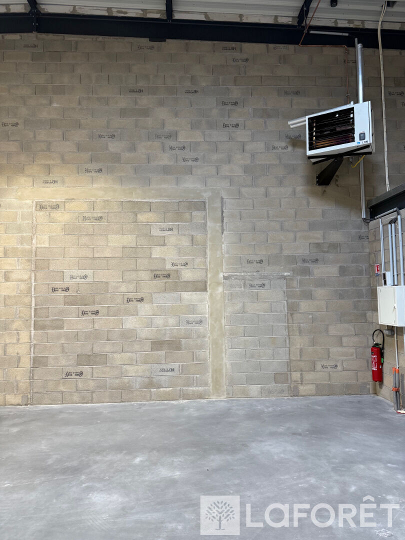 Le bâtiment, livré en 2024, propose une grande hauteur sous plafond, une porte sectionnelle motorisée et un accès adapté aux poids lourds. Il comprend un espace aménagé de 36 m² avec point d'eau, pouvant être utilisé comme bureau ou local social, ainsi que des sanitaires conformes aux normes PMR. Une mezzanine (36m²) est accessible et peut être aménagée selon les besoins du locataire.