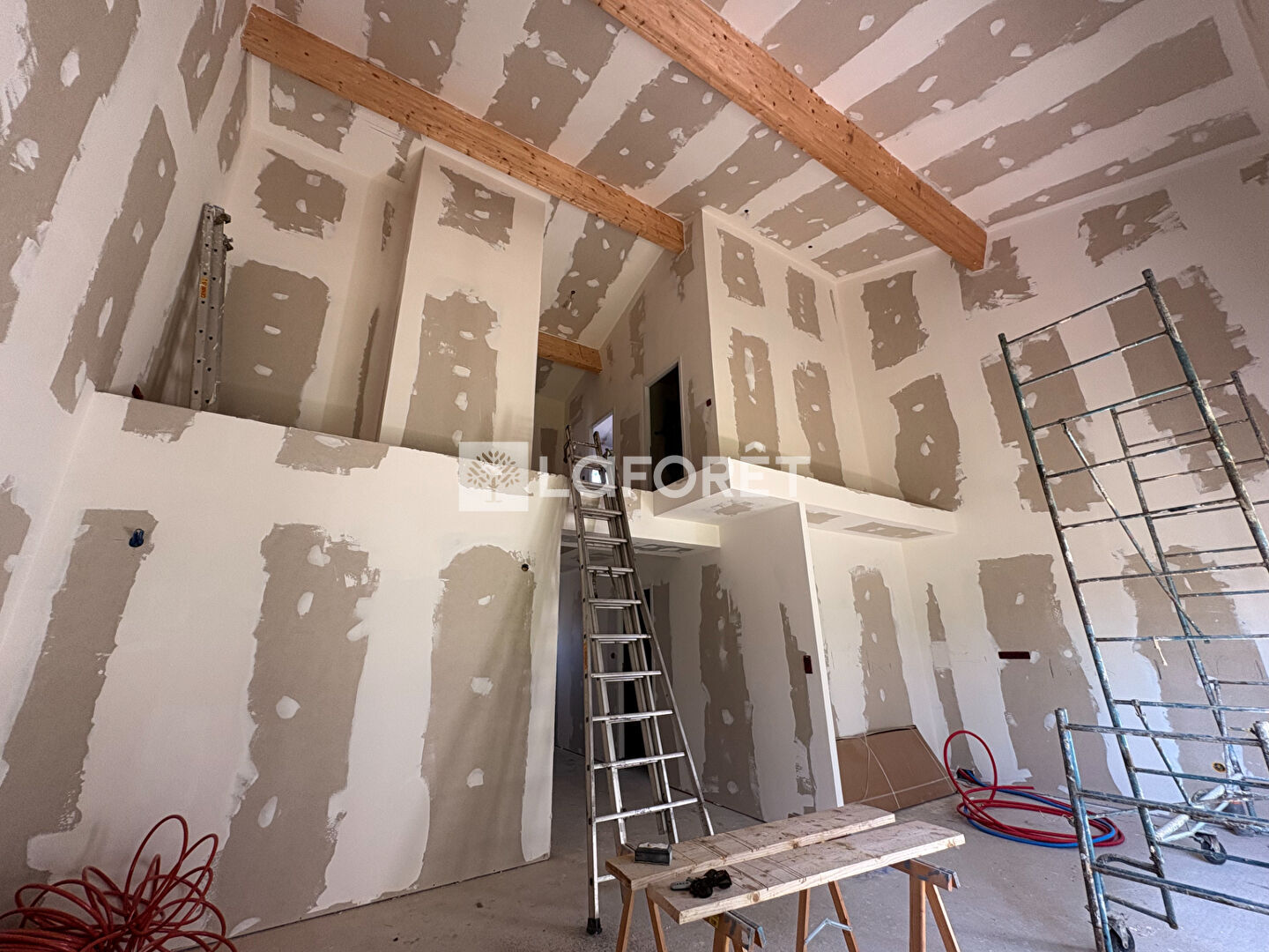 A l'étage une mezzanine, 2 chambres, une salle d'eau.