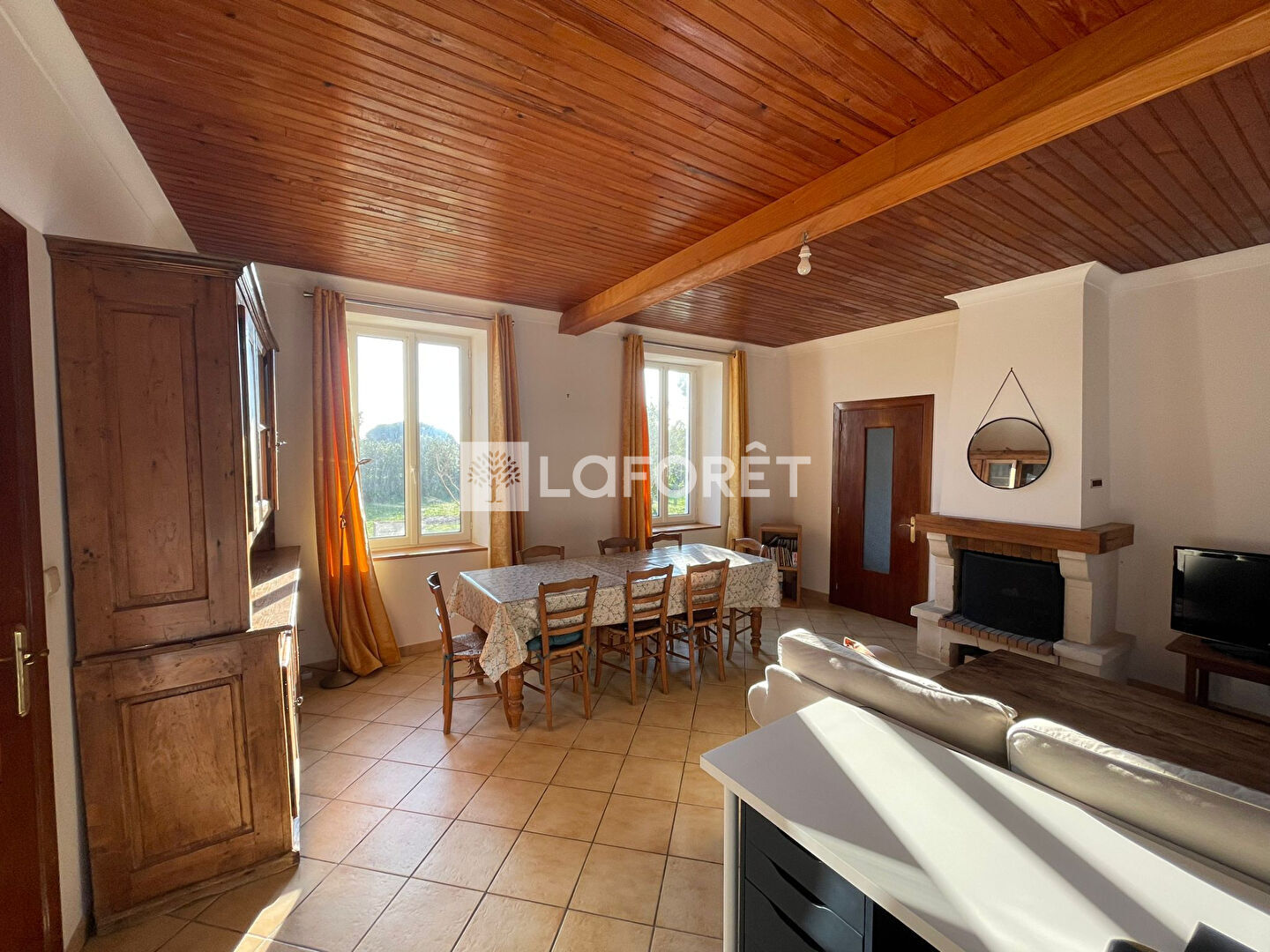 - une maison principale de 120m2 bâtie sur 2 niveaux avec cuisine aménagée et équipée avec poêle à bois, d'un salon/séjour avec cheminée, une salle de bains avec wc, buanderie, palier desservant 2 chambres, un bureau, une salle d'eau avec wc. Jardin clos et arboré sans vis à vis