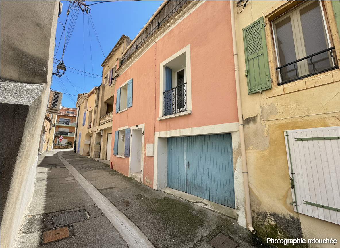 EXCLUSIVITE - Au coeur du village et de ses commodités, cette maison propose 95m² habitables: en rdc, séjour, cuisine sur courette intimiste, accès intérieur au garage; au premier, 2 chambres, sdb et WC, et au dessus, une troisième chambre et une belle terrasse sur toit.