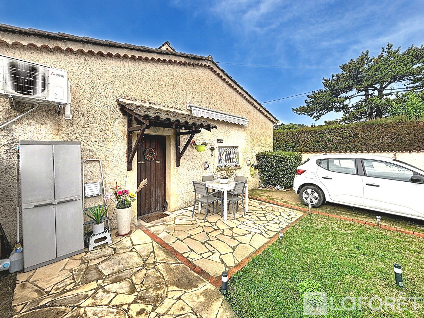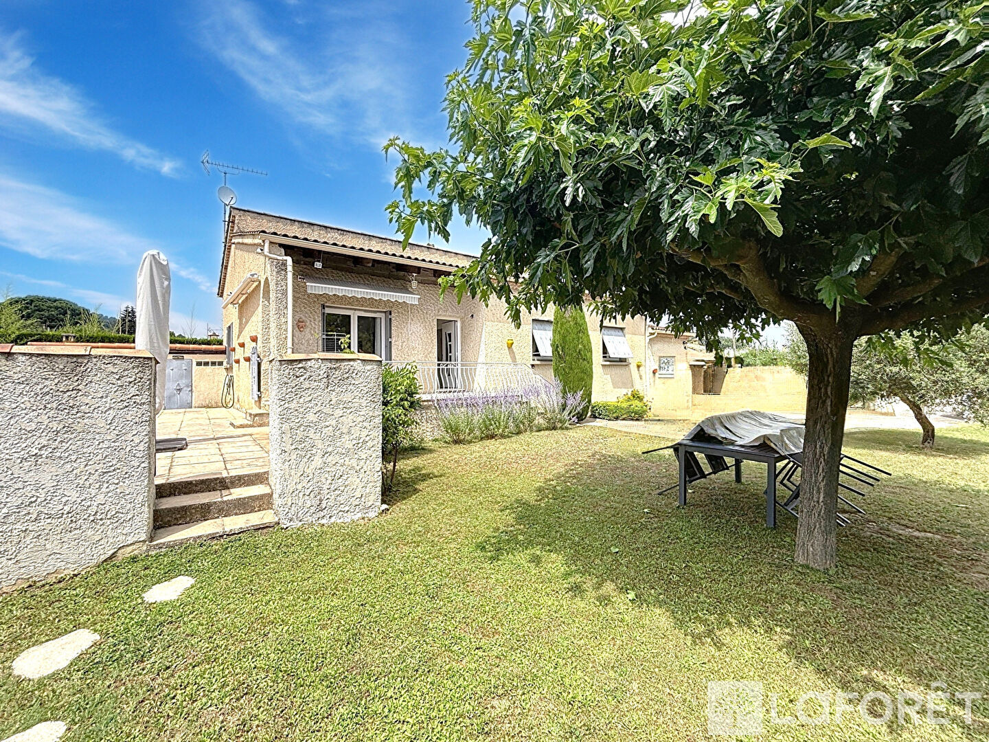 Le studio d'environ 35 m² dispose de sa propre entrée indépendante, accessible par un portail électrique, ainsi que d'un jardin privatif entièrement clôturé, sans vis-à-vis avec la maison. Il est actuellement loué à un locataire seul pour un loyer de 460 € par mois.