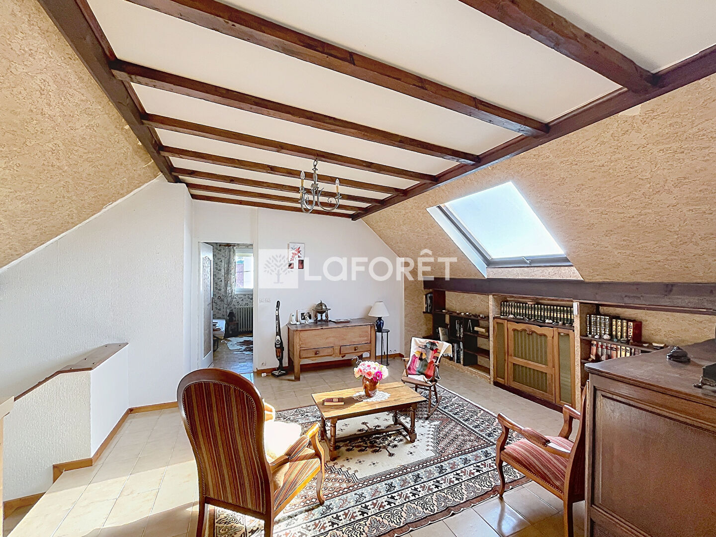 À l'étage, un grand dégagement pouvant faire office de bureau, d'espace détente ou de bibliothèque dessert 2 chambres et 1 pièce traversante (possibilité de créer une 6ème chambre), ainsi qu'une salle d'eau avec WC.