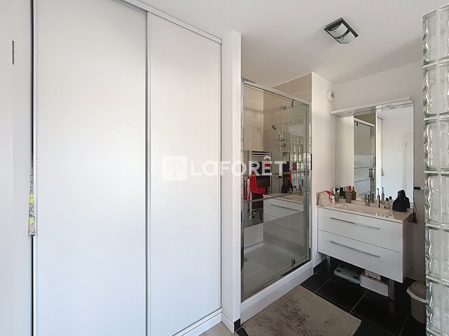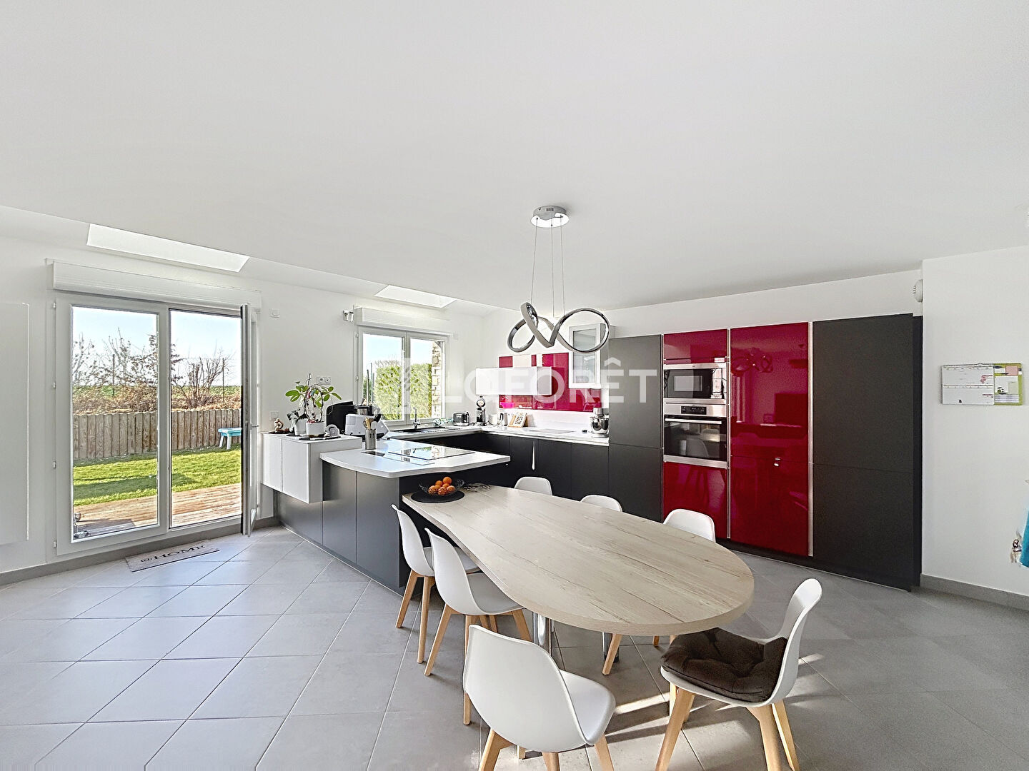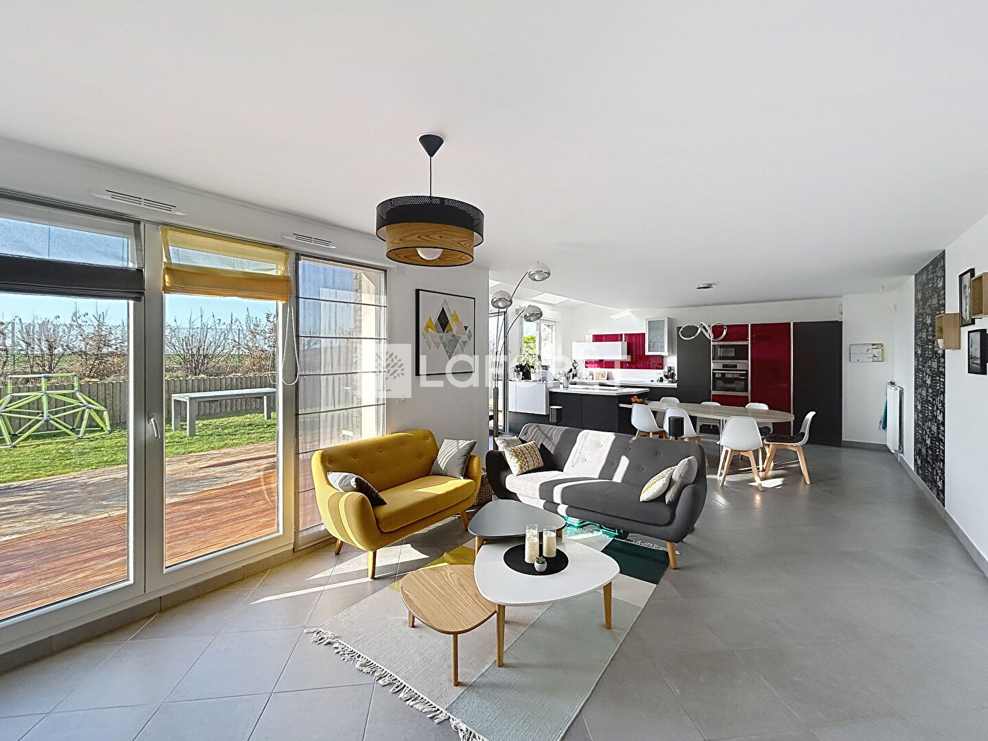 Elle se compose d'une entrée avec placards, de wc séparés et d'un très beau séjour/salle à manger avec une cuisine Schmidt ouverte aménagée et équipée avec un accès à la terrasse et au jardin bien exposés et sans vis à vis !