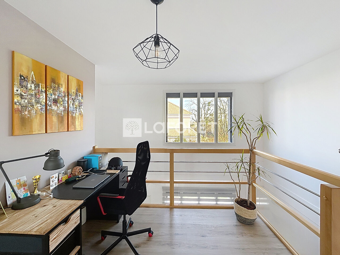 A l'étage un palier mezzanine de 10 m2 dessert 3 chambres, une salle de bains, des wc séparés et une chambre parentale avec sa salle d'eau. Les combles sont aménageables.