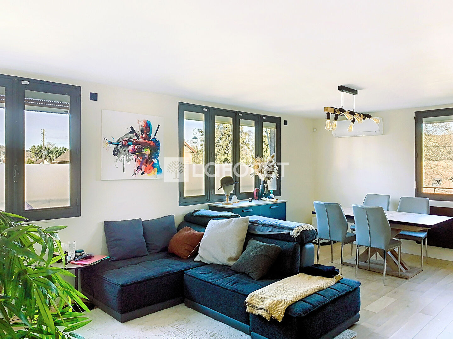 Elle est édifiée au centre d'une jolie parcelle et offre un garage ainsi qu'un sous-sol complet et aménagé en grande partie. La maison se compose d'une entrée - loggia (vue sur le clocher de l'église de Maule au loin), d'une très lumineuse pièce de vie avec cuisine ouverte aménagée et équipée, un wc indépendant, deux chambres, un dégagement avec coin dressing, une salle d'eau.