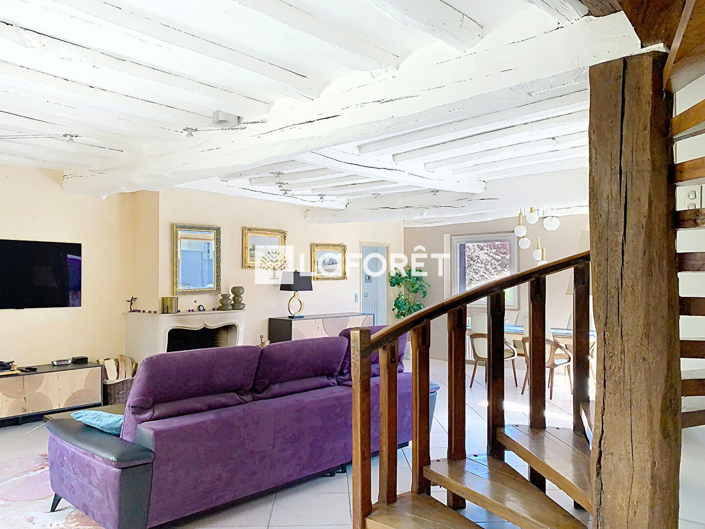 Elle offre en rez de chaussée un petit hall d'entrée agrémenté de grands placards faisant office de vestiaire d'accueil, on découvre ensuite une très belle pièce de vie de 48 m² traversante, permettant un très bel espace salon autour de la cheminée ainsi qu'une belle place pour une salle à manger avec vue dégagée sur la parcelle.