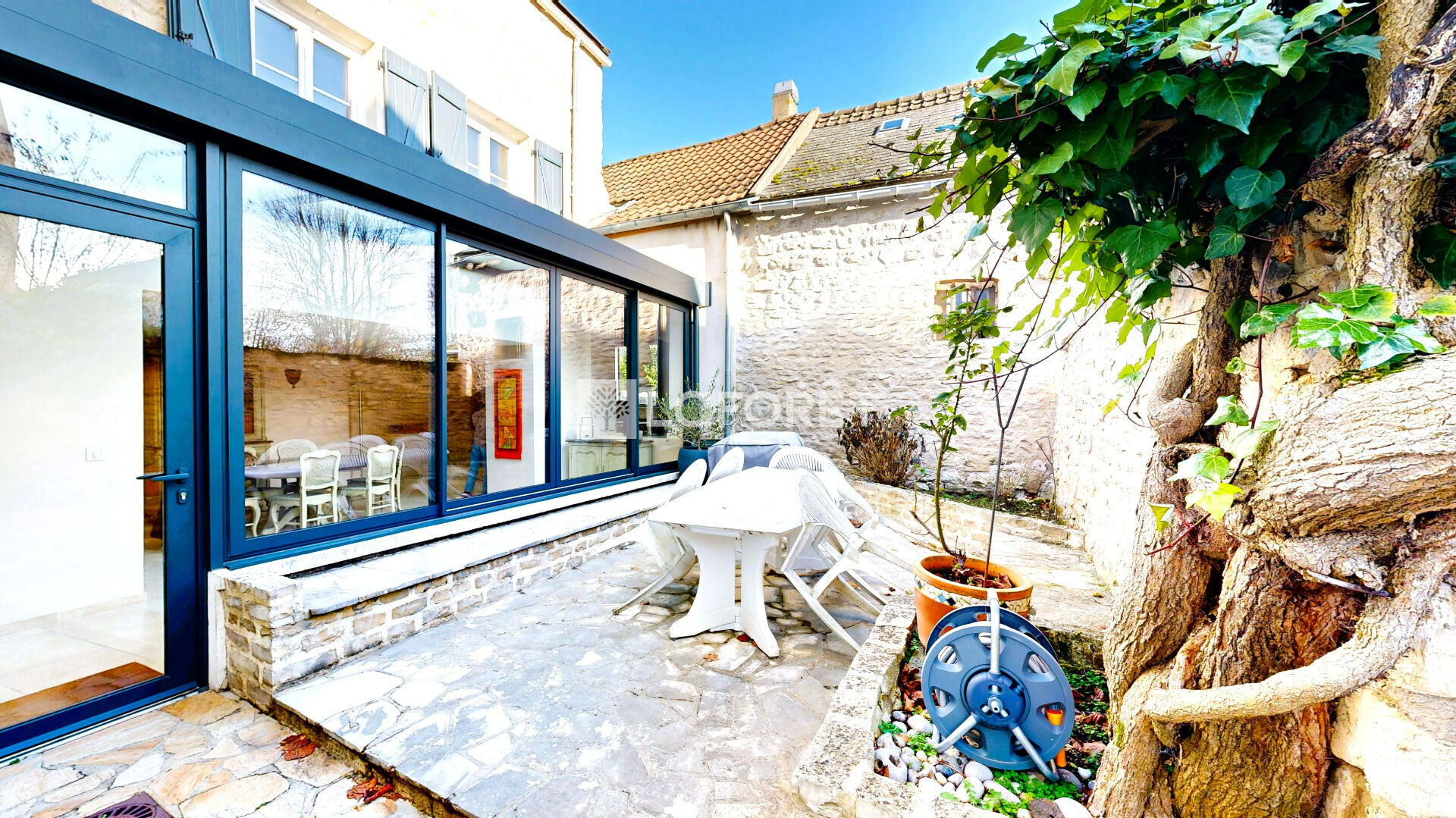 La cour jouit d'une exposition plein sud et bénéficie d'une totale intimité comme je jardin car il n'y a aucun vis à vis. Vous pourrez donc profiter dès le retour des beaux jours de ce double extérieur fort sympathique en toute tranquillité et confidentialité.