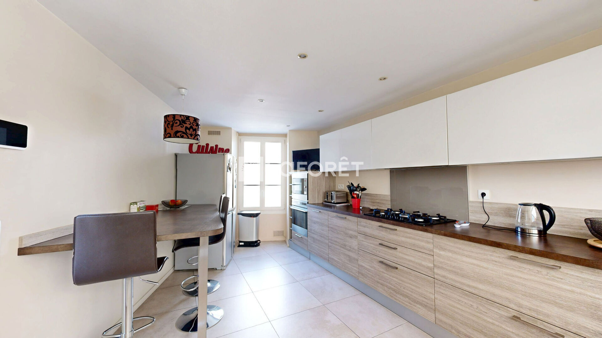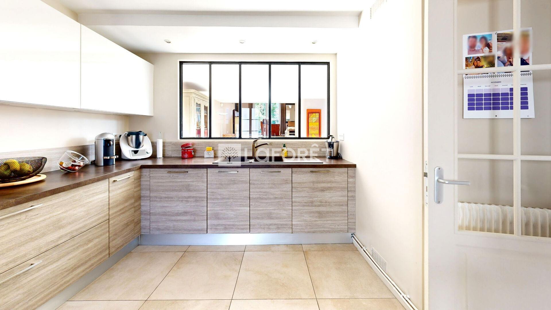 Une petite entrée décalée avec wc et vestiaire aménagé indépendant et l'accès au garage. Une belle cuisine avec verrière offrant une vue imprenable sur l'intégralité de l'espace de réception.