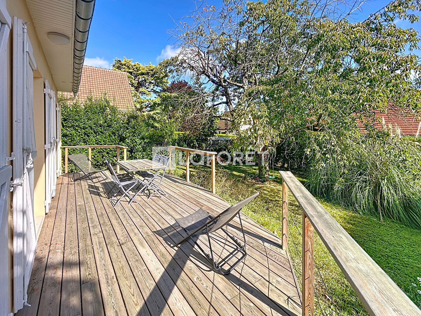 Elle se compose au rez de chaussée d'une entrée, d'un séjour/salle à manger de 30m2 avec cheminée donnant accès à une belle terrasse en bois et au jardin, d'une cuisine indépendante, d'un bureau/chambre invité, d'une chambre, d'une salle de bains et de wc indépendants.