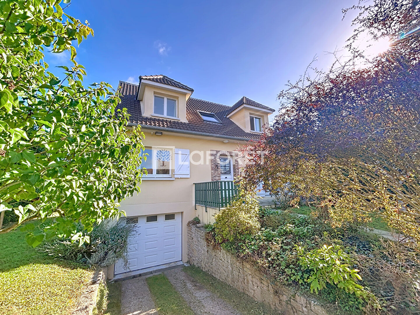 Proximité A14- A13, Bus La Défense. Gare SNCF de Poissy ligne Paris-Saint Lazare (23 min), futur RER E, RER A . Ecole maternelle et primaire publique et privée. Ecole privée Notre Dame des Oiseaux à Verneuil sur Seine, Collège à Chambourcy, Lycée à Poissy et à St Germain en Laye (Institut Notre Dame et Lycée International).