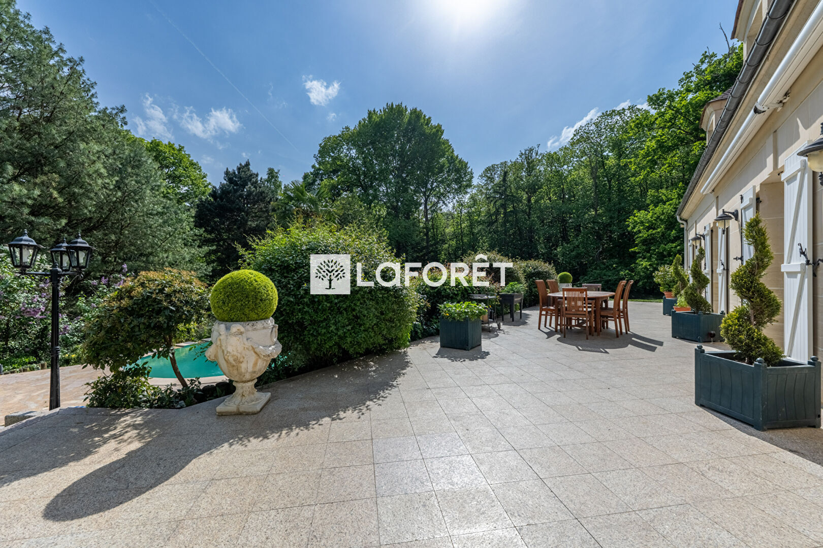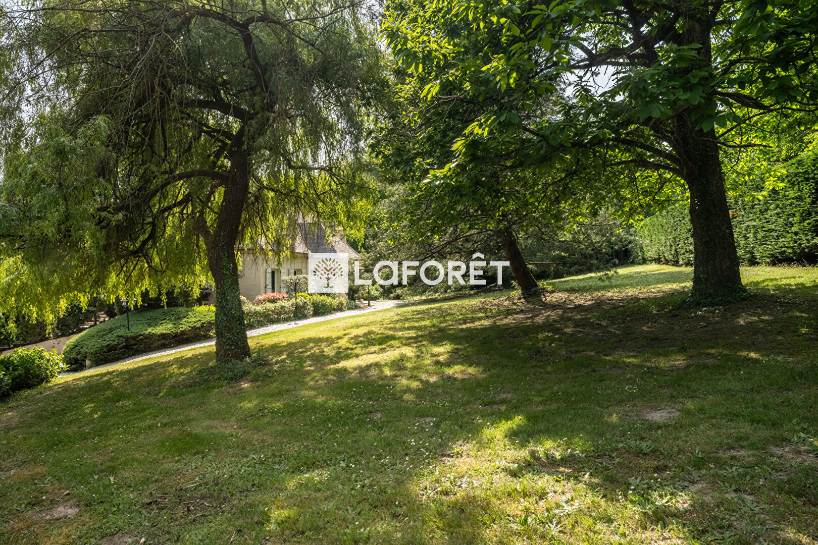 La parcelle est entièrement clôturée et la propriété est également composée de parcelles boisées entourant la parcelle initiale de la maison. Nombreuses places de stationnement sur la propriété grâce à sa très belle allée menant au sous-sol ainsi qu'à la plateforme d'accueil pour plusieurs véhicules. Le portail est électrique. La maison n'est pas visible depuis l'extérieur.