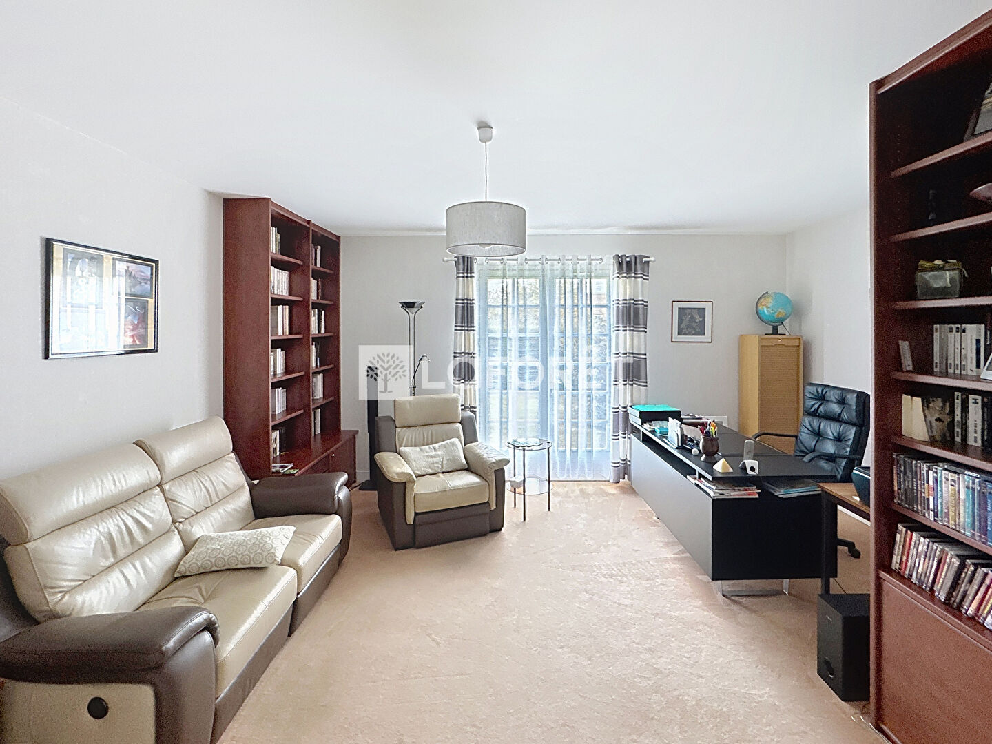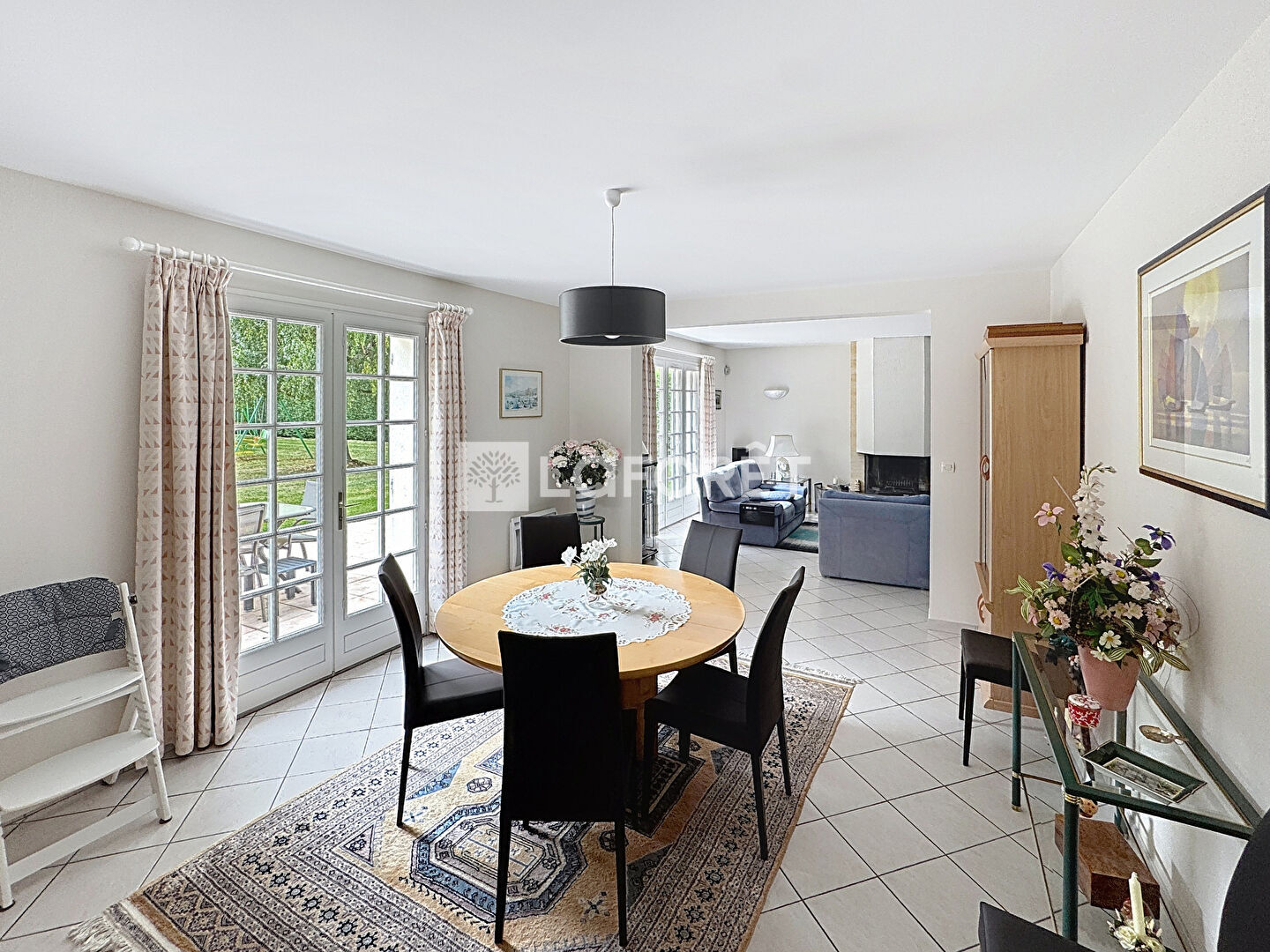 - Au rez-de-chaussée, une entrée dessert une grande pièce de réception composée d'un espace salon avec cheminée insert et un espace salle à manger entièrement ouverte sur une grande terrasse plein sud (store bane électrique), une cuisine dinatoire indépendante, une arrière cuisine avec espace buanderie, des WC avec lave mains, un salon bibliothèque ou bureau, et une chambre avec sa salle d'eau.