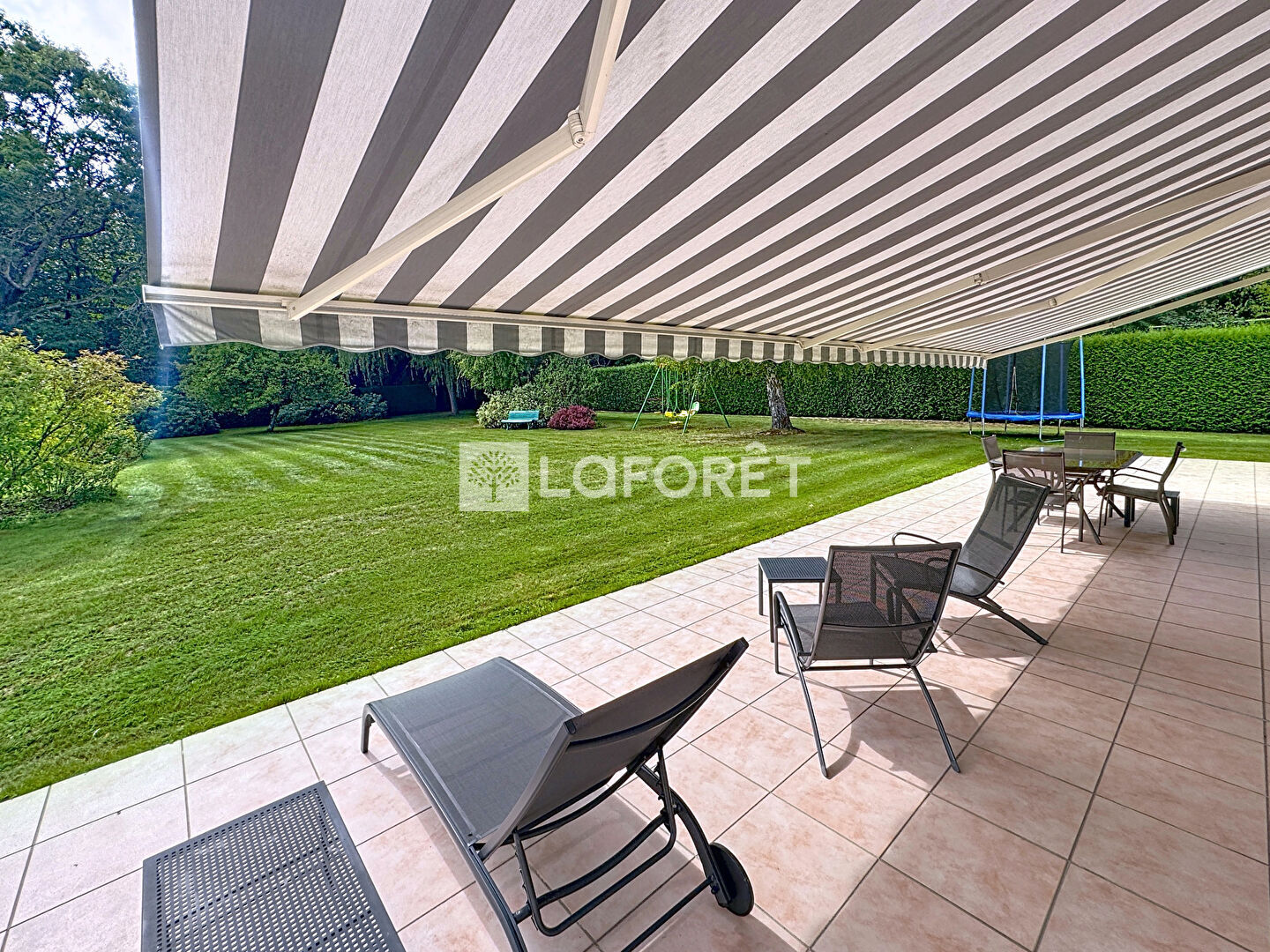 Le grand jardin, plat, au calme et sans vis à vis est exposé sud et ouest (possibilité de construire une piscine). Belle vue sur un espace boisé attenant.