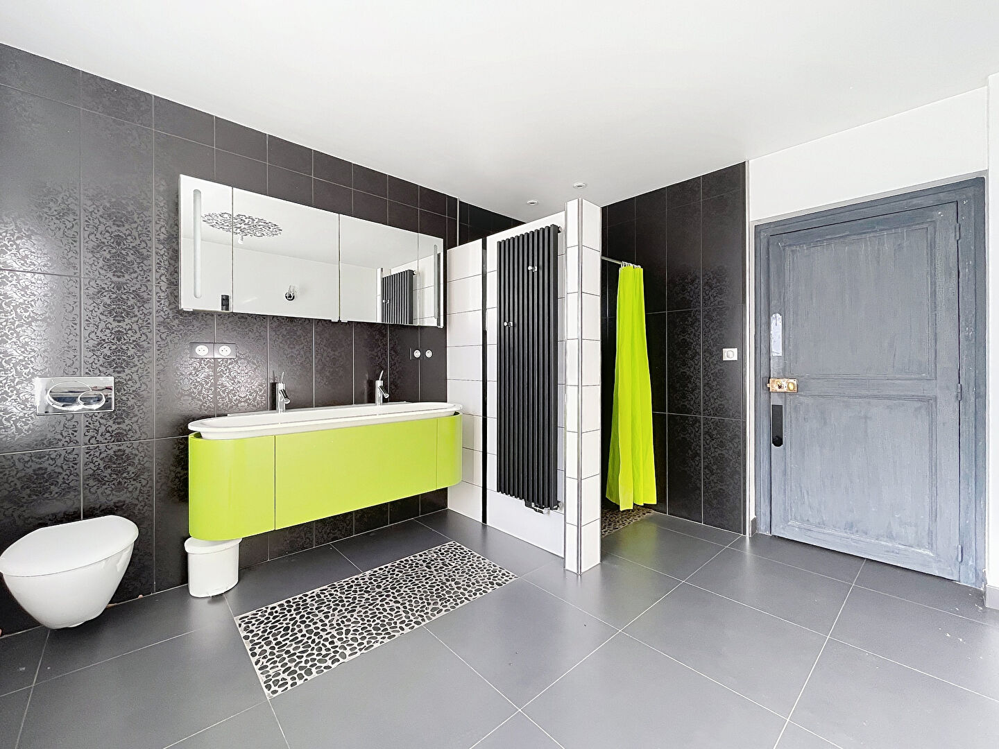 Au rez-de-chaussée, l'entrée nous guide vers un séjour de 37 m² avec cheminée et une grande ouverture sur le jardin pour profiter de la lumière naturelle. Une cuisine aménagée et équipée prolonge cette première pièce de vie.