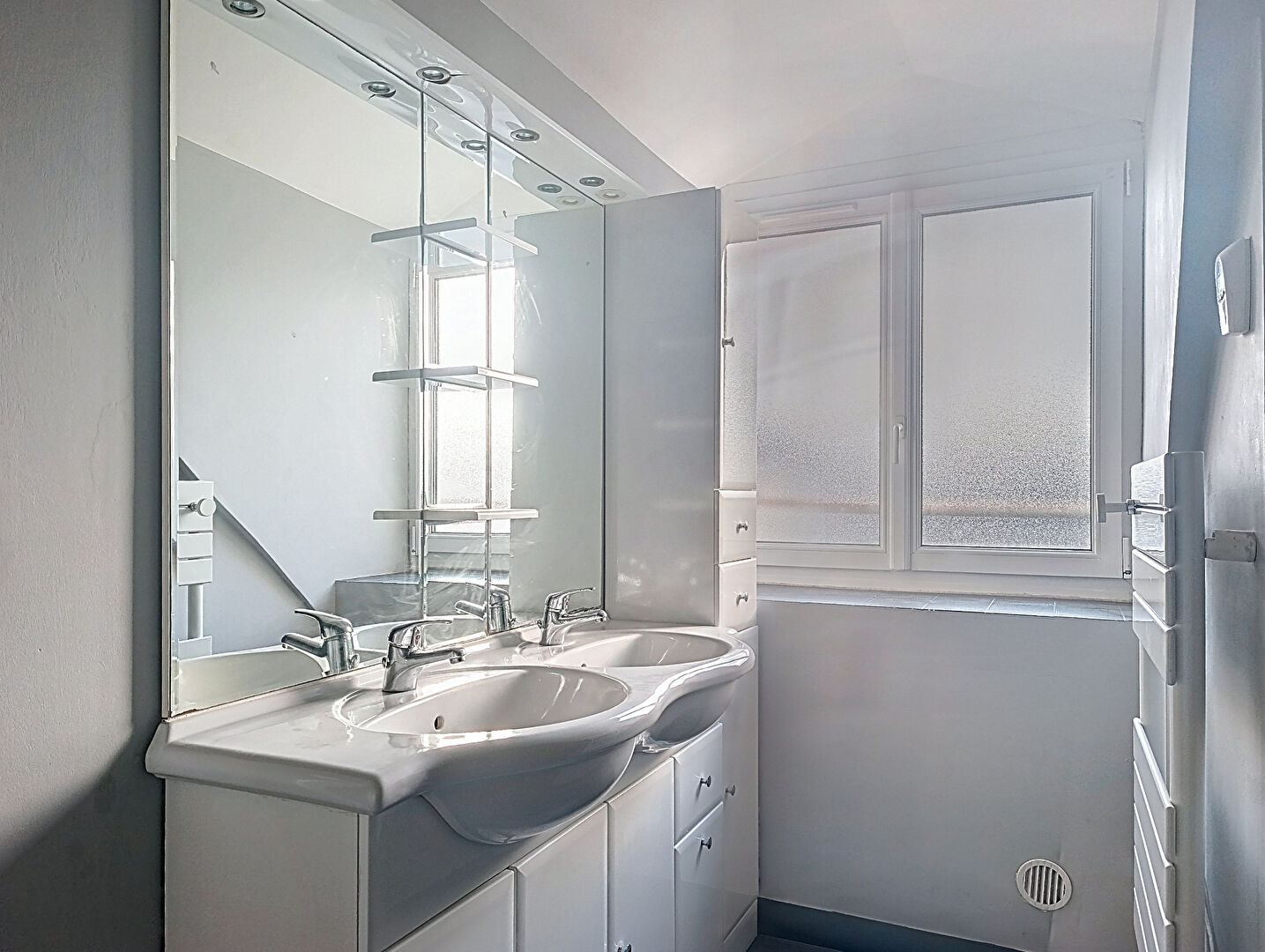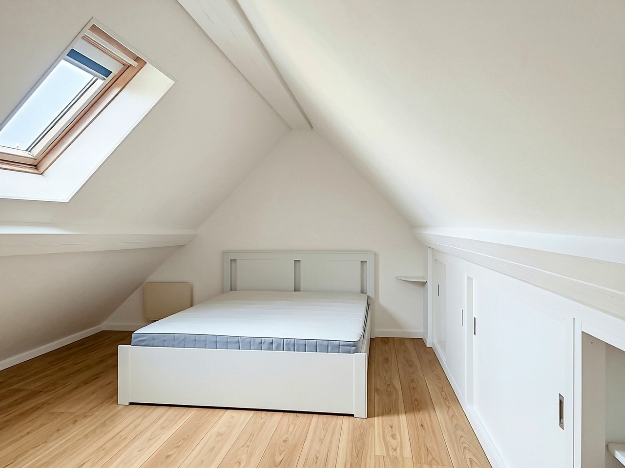Il se compose d'une entrée, WC séparé, salle de bains avec douche. Un grand séjour et cuisine ouverte équipée et aménagée. A l'étage on retrouve une belle chambre avec rangements.