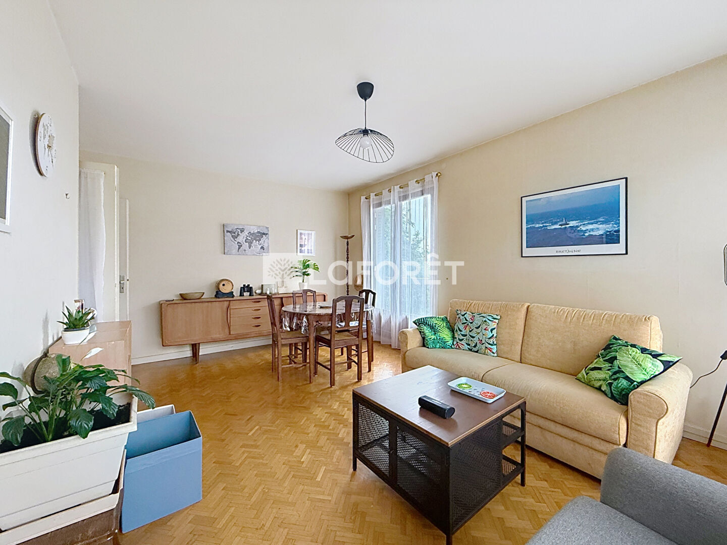 Il se compose d'une entrée avec grands placards, d'un séjour ouvrant sur un balcon, d'une salle à manger pouvant facilement être transformée en deuxième chambre, d'une cuisine équipée avec cellier attenant, d'une chambre, de WC séparés et d'une salle d'eau.