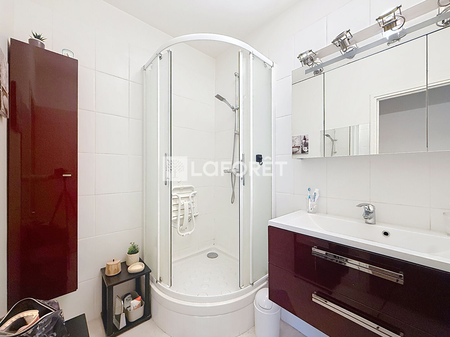 Ce bien inclut également une cave, et le stationnement est libre au sein de la résidence.