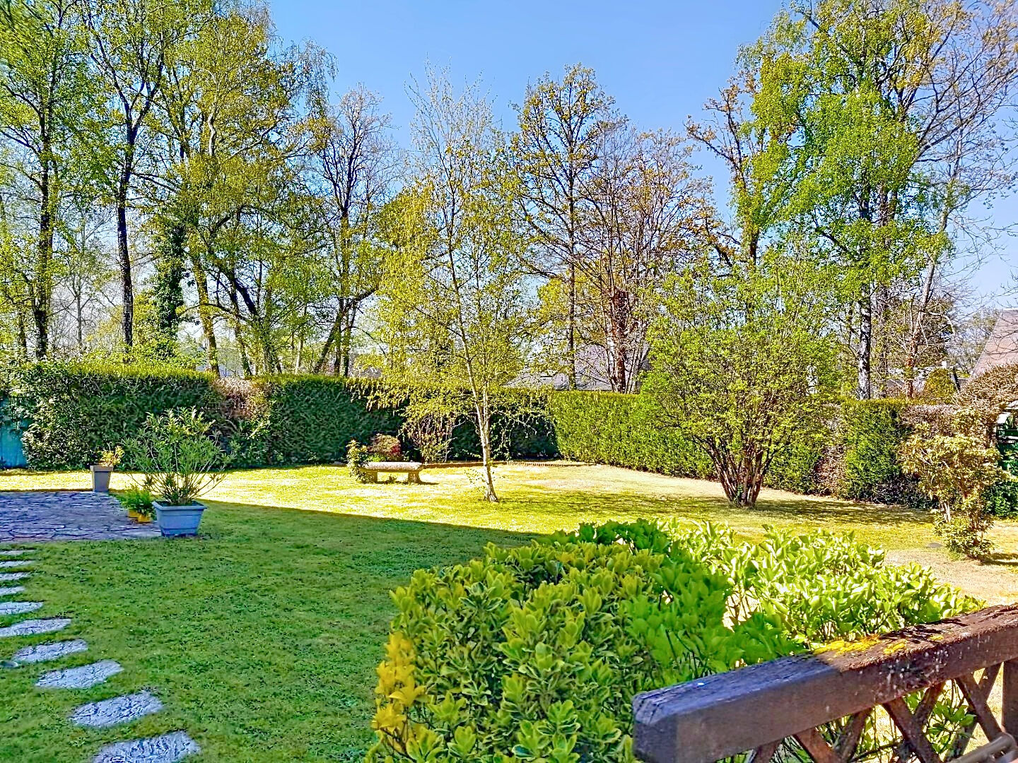 Un jardin clôturé, arboré et sans vis-à-vis ainsi qu'un grand garage complètent cette maison.
