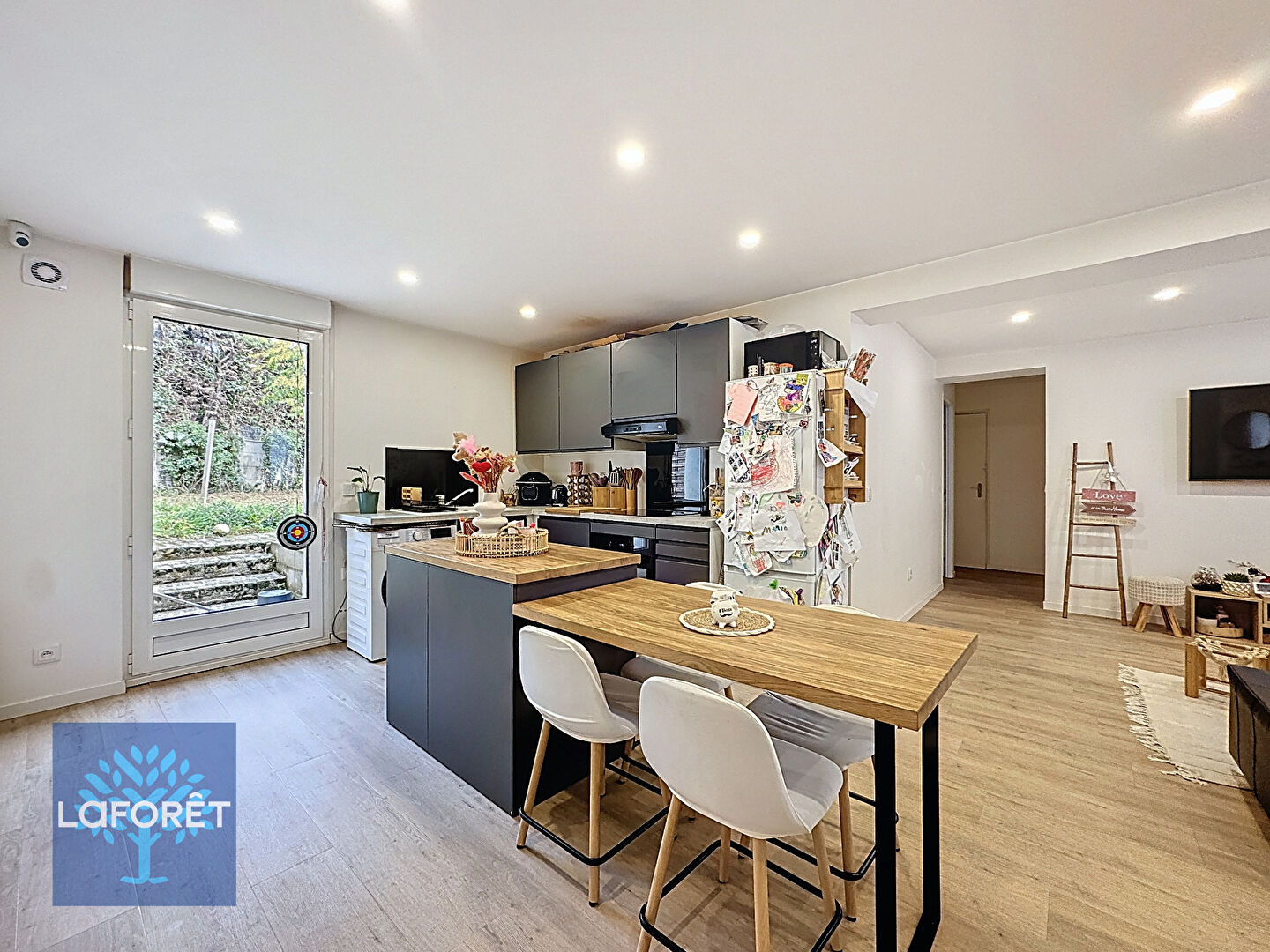 Il se compose d'un séjour convivial avec cuisine ouverte, d'un salon offrant un espace de vie confortable, de deux chambres, d'un dégagement, d'une salle d'eau et de WC séparés.