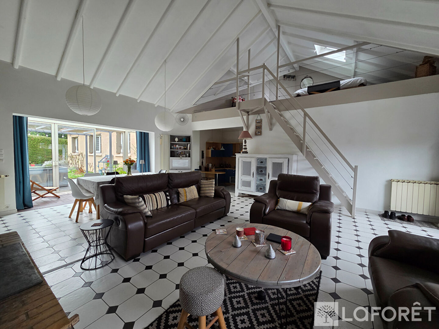 Une mezzanine surplombant le séjour propose un beau potentiel d'aménagement pour une pièce supplémentaire.