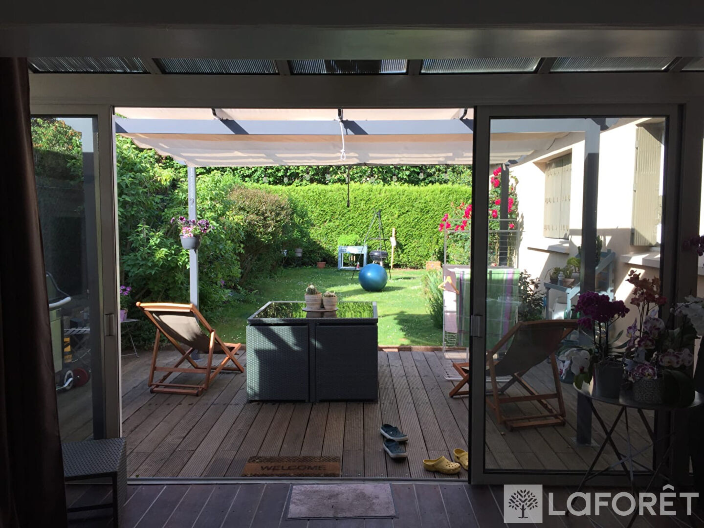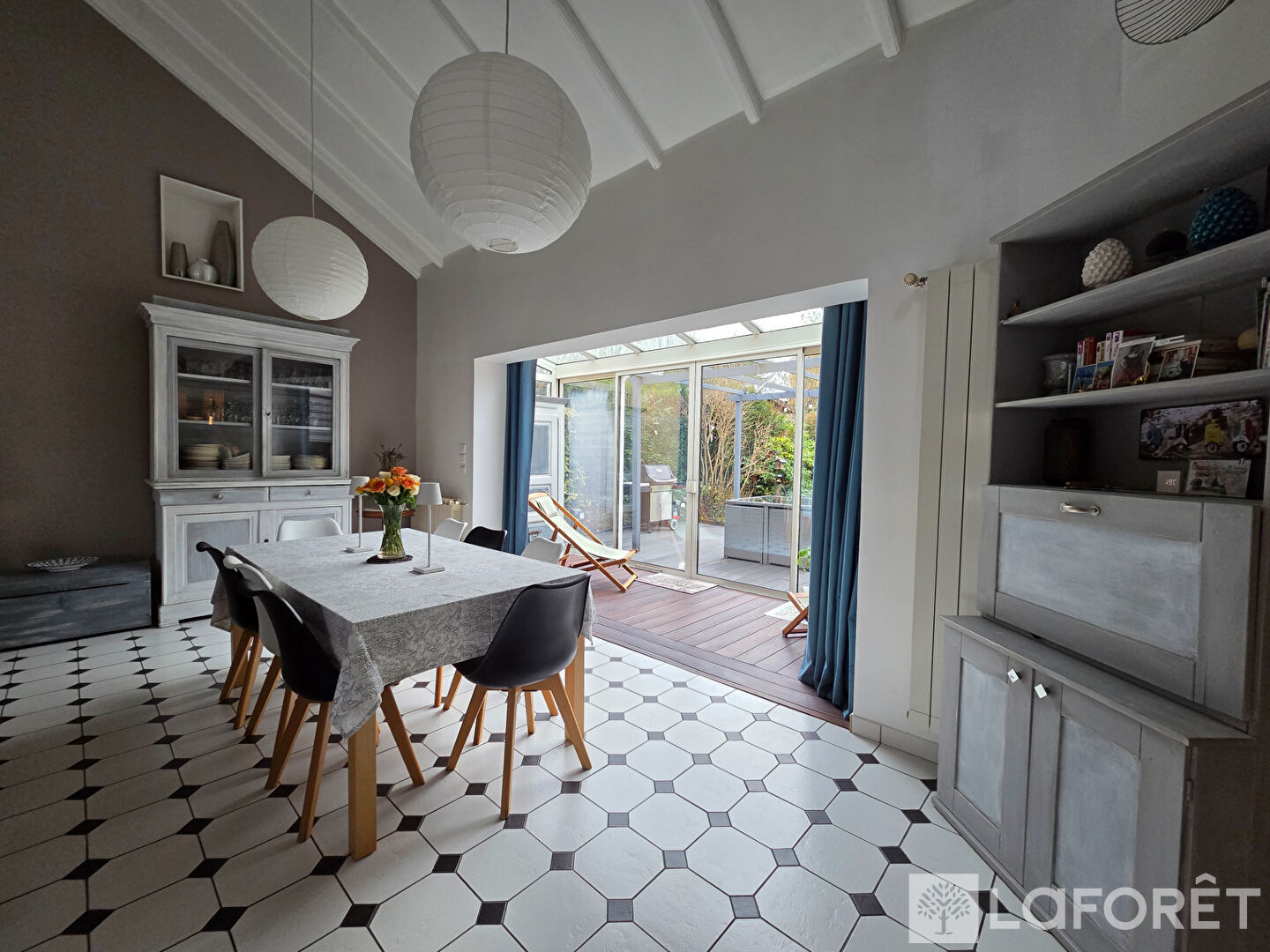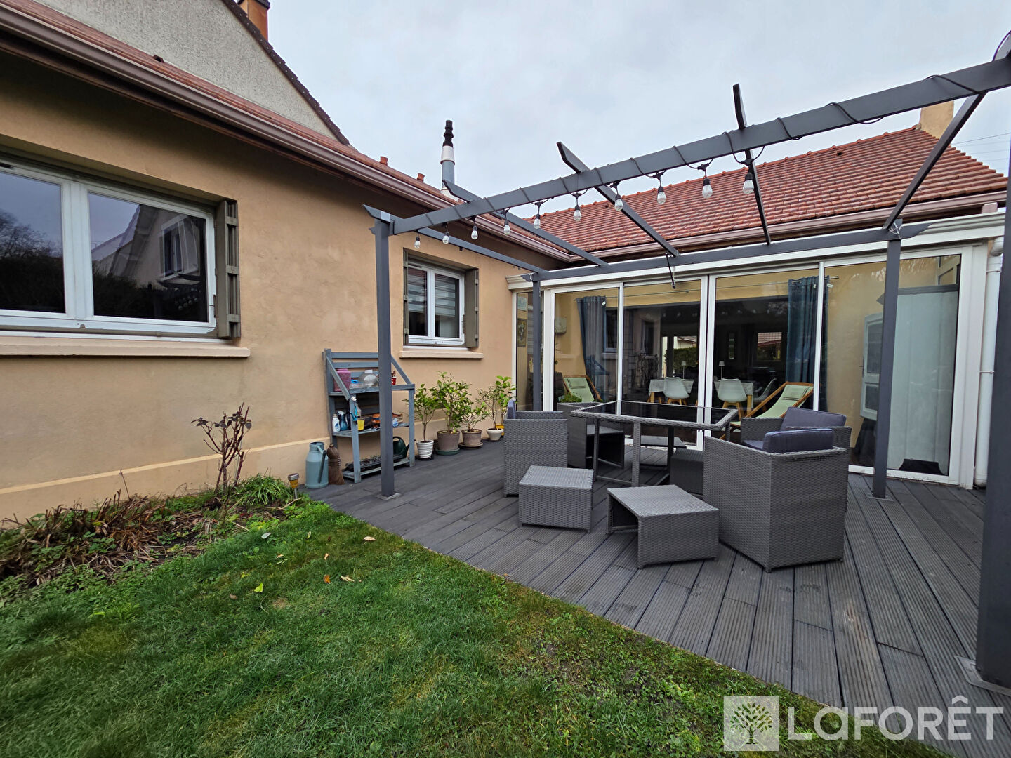 Une véranda ouvre sur la terrasse et le jardin.