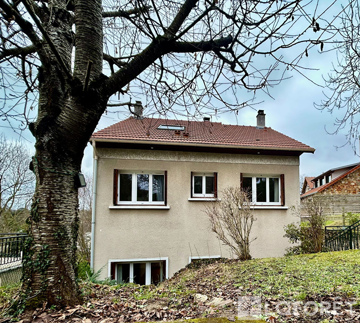 A l'étage : Palier, deux chambres, salle de bains, WC, bureau avec rangements et escalier pour accéder aux combles.