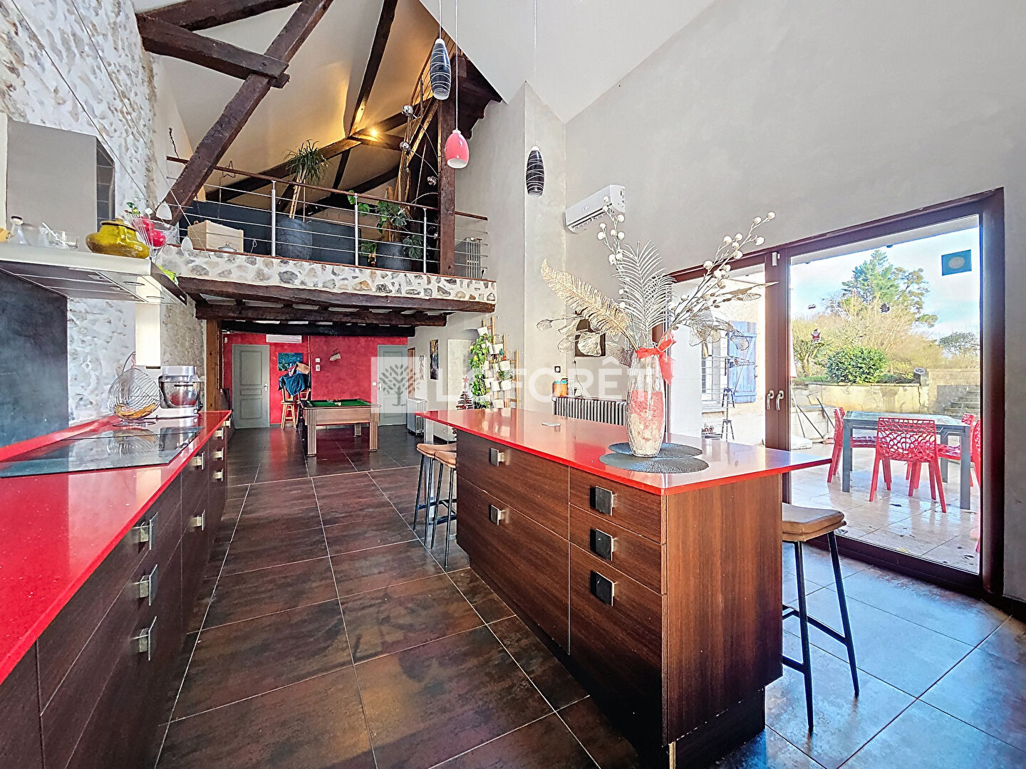 PROCHE ORTHEZ En campagne à proximité d'Orthez en direction de Bayonne, cette authentique maison béarnaise rénovée séduit par sa grande superficie habitable et ses beaux volumes ; elle offre au rez-de-chaussée une cuisine équipée ouverte sur une salle à manger, un salon avec insert, deux chambres dont une suite parentale et une buanderie, tandis que les étages accueillent une salle de jeux en mezzanine et cinq chambres supplémentaires, le tout complété par une grange attenante et un terrain de 4670m² avec piscine, jacuzzi et terrain de pétanque. Elle dispose également d'équipements énergétiques modernes et performants, avec une chaudière à granulés, une climatisation réversible et des panneaux photovoltaïques. CLASSE ENERGIE : C.