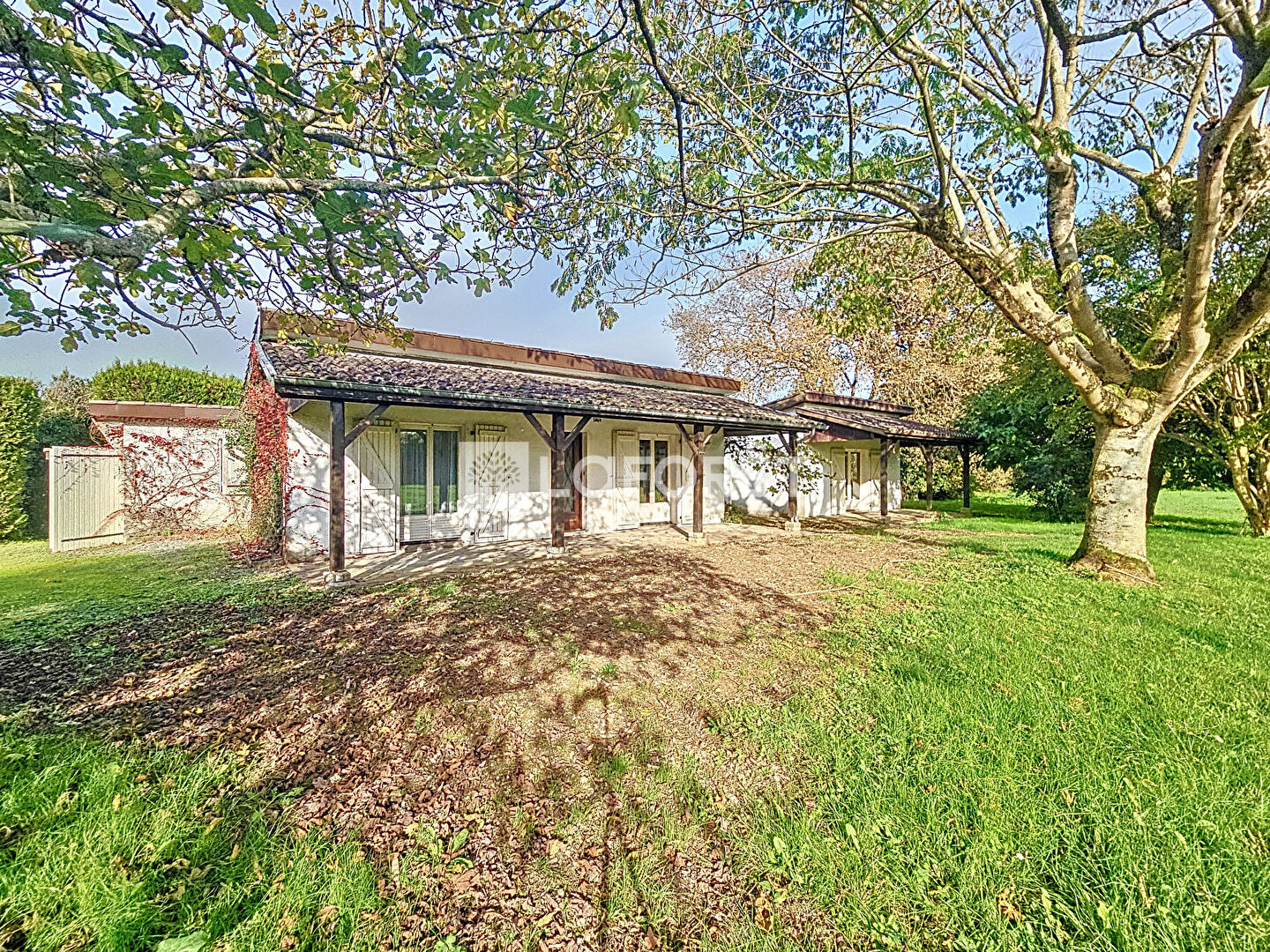 ORTHEZ A proximité du centre ville d'Orthez et des commodités, lumineuse maison de plain pied comprenant salon, salle à manger, cuisine, 4 chambres et terrasses couvertes sur un parc arboré de 2665m². CLASSE ENERGIE : E .