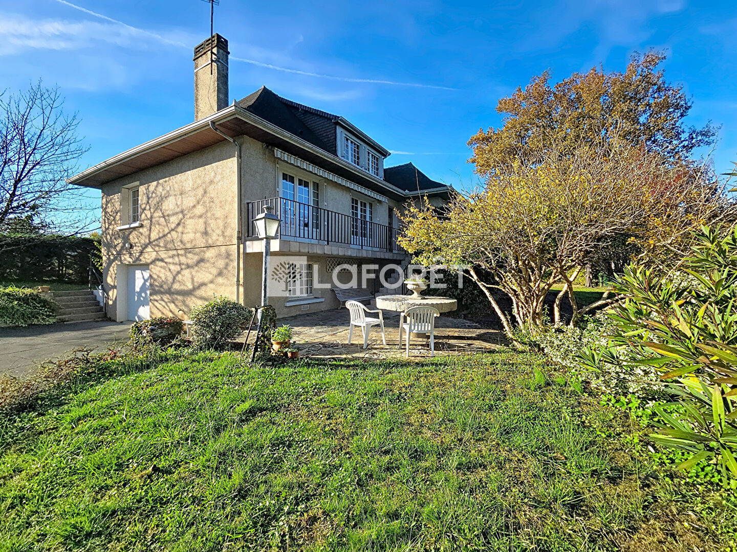 ORTHEZ Dans un quartier recherché d'Orthez alliant calme, cadre campagne et proximité du centre-ville, cette maison de construction traditionnelle, située sur les hauteurs, offre un lieu de vie agréable. Élevée sur un grand sous-sol en partie aménagé, elle propose au rez-de-chaussée un spacieux séjour double avec insert ouvrant sur balcon, une cuisine équipée et deux chambres. L'étage accueille deux chambres supplémentaires, tandis qu'une cinquième se trouve au sous-sol. Ce dernier comprend également un garage, un atelier, une buanderie et une arrière-cuisine. L'ensemble s'étend sur un parc arboré de 2002m² agrémenté d'un abri voiture. Maison familiale avec environnement privilégié. CLASSE ENERGIE : E.