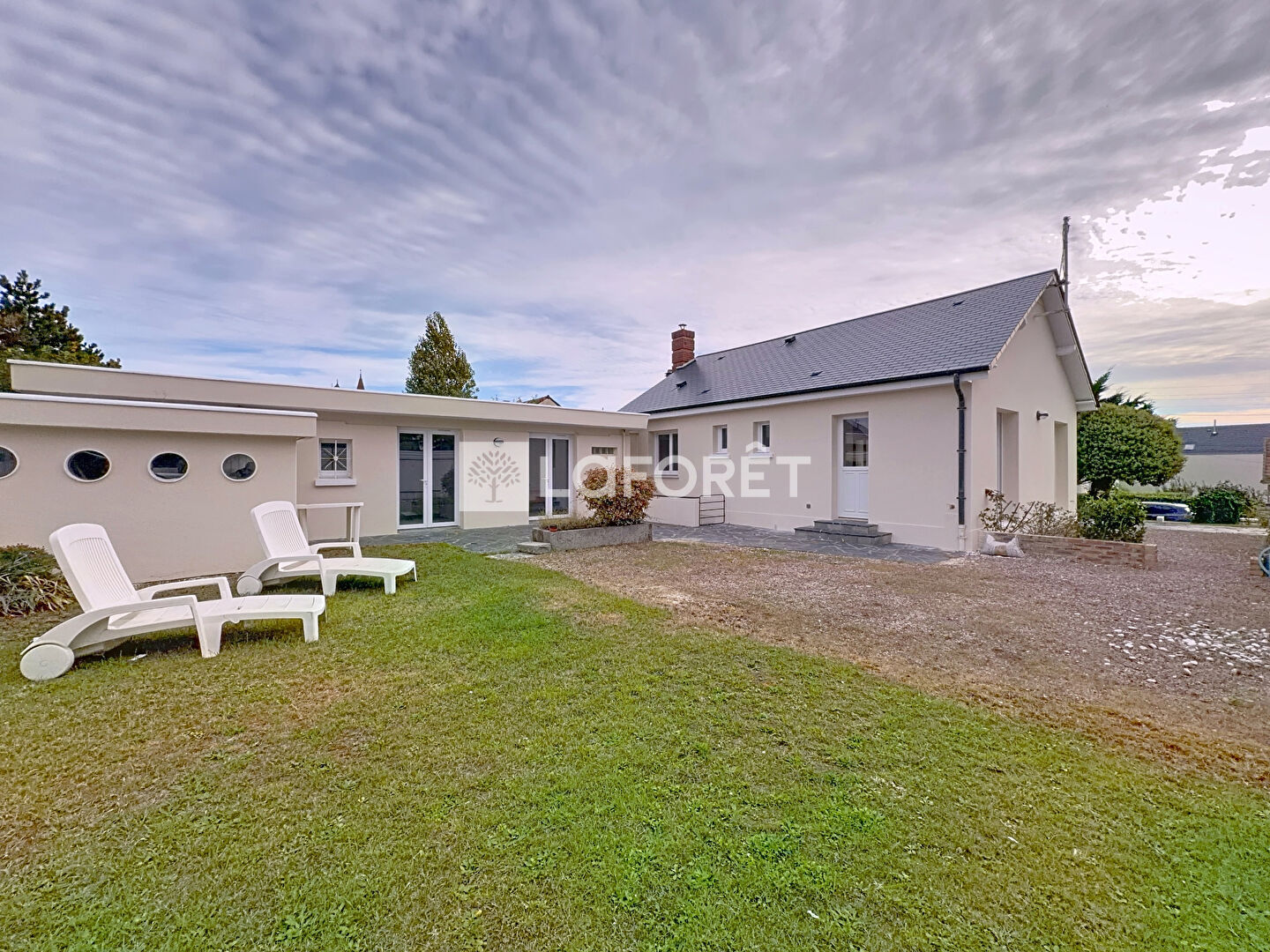 Charmante maison intégralement rénovée de plain pied offrant un beau séjour salon triple exposition, une cuisine aménagée et équipée neuve, 3 chambres dont une suite parentale avec salle de bains (douche & baignoire), une salle d'eau, un W.C.