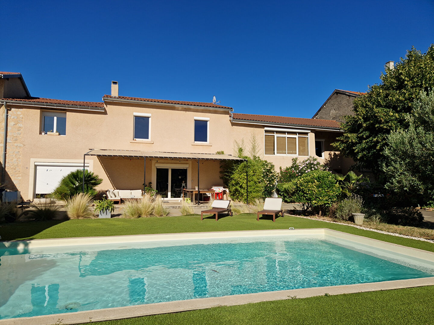 Cette maison de caractère offre de beaux volumes, elle est orientée plein Sud-Ouest. Elle profite du confort de l'isolation et la faible consommation d'énergie gràce à l'installation de la P.A.C en 2023.