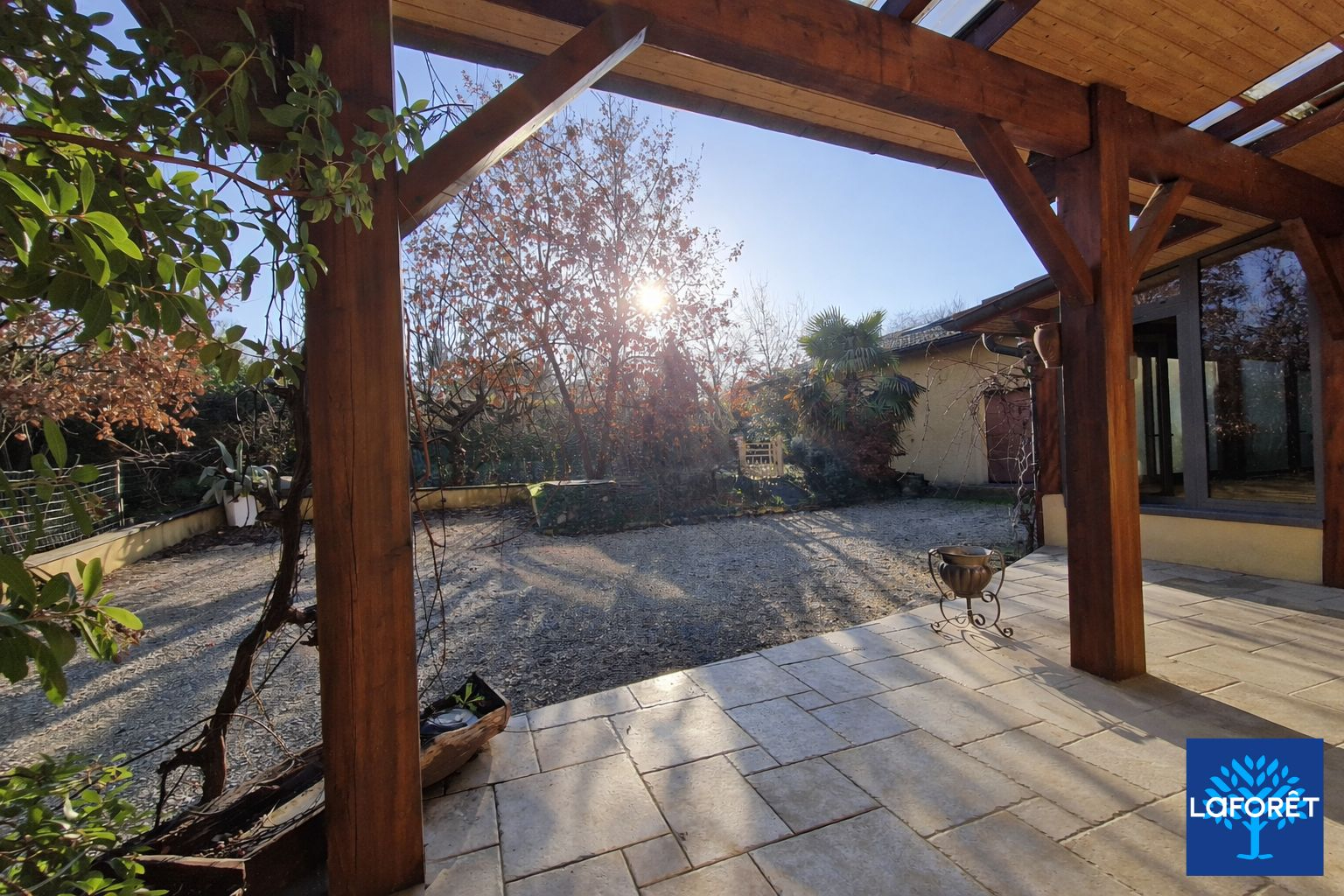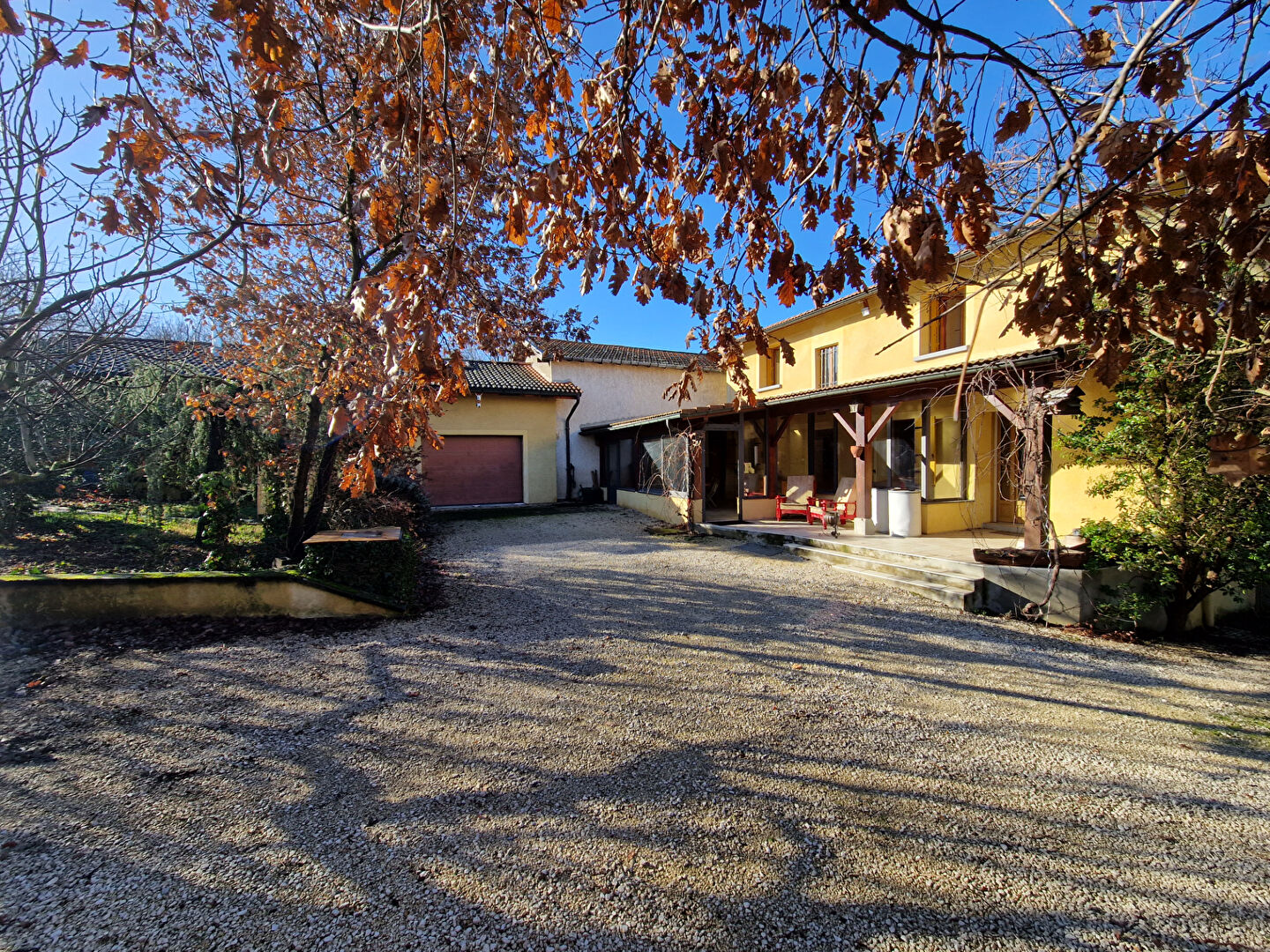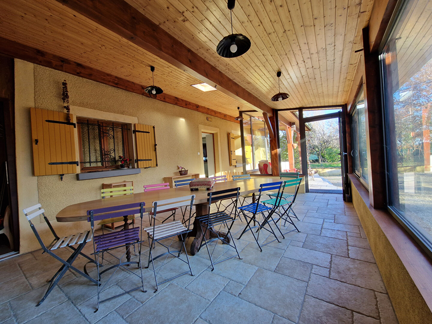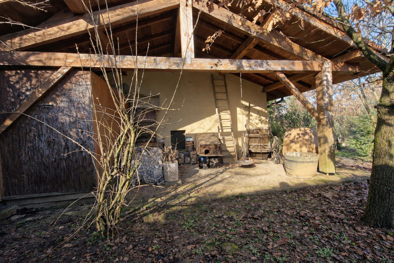 Un hangar attenant ouvre la voie à la création d'une terrasse couverte ou d'une véranda, selon vos envies.