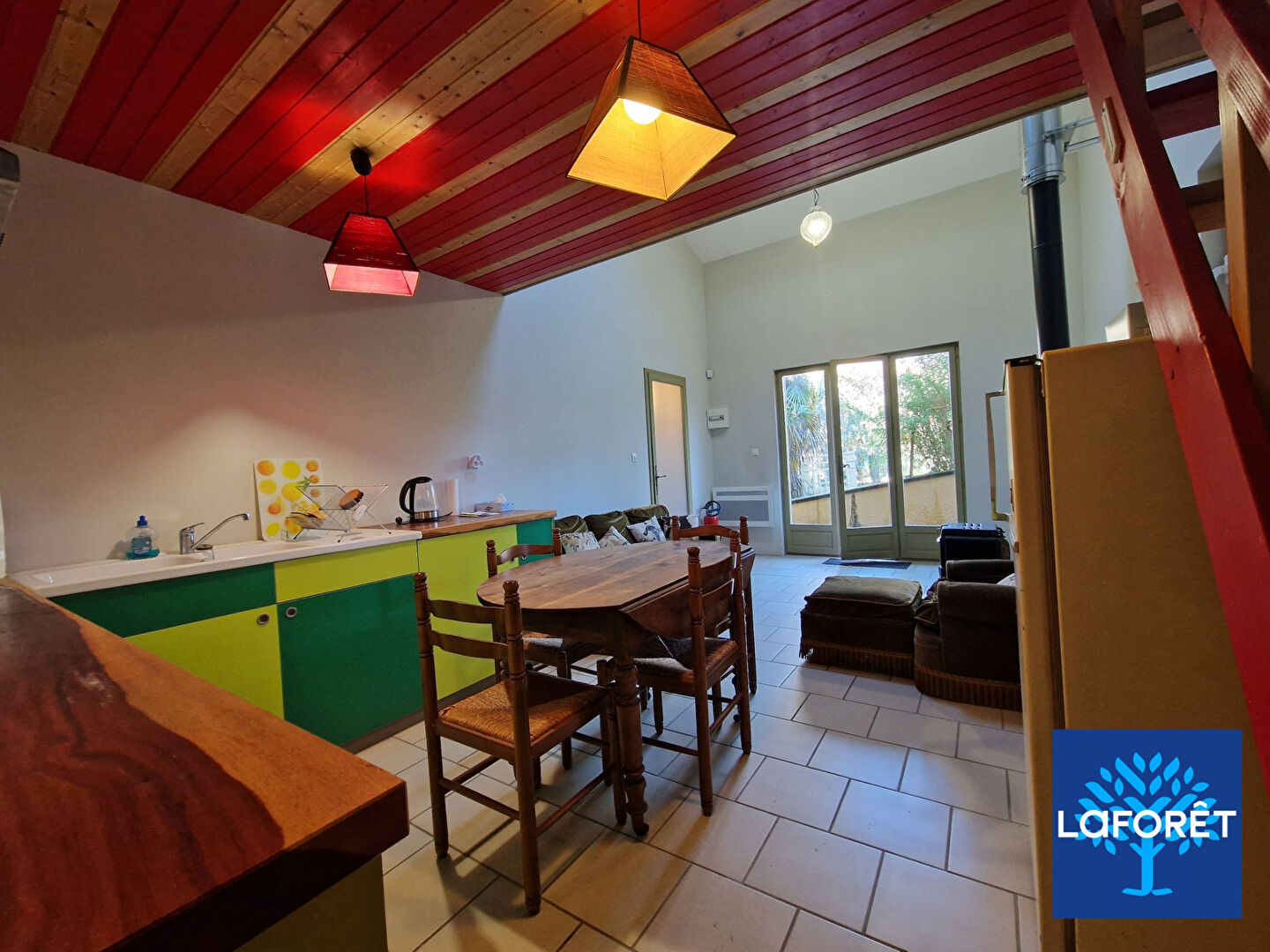 - séjour avec cuisine,