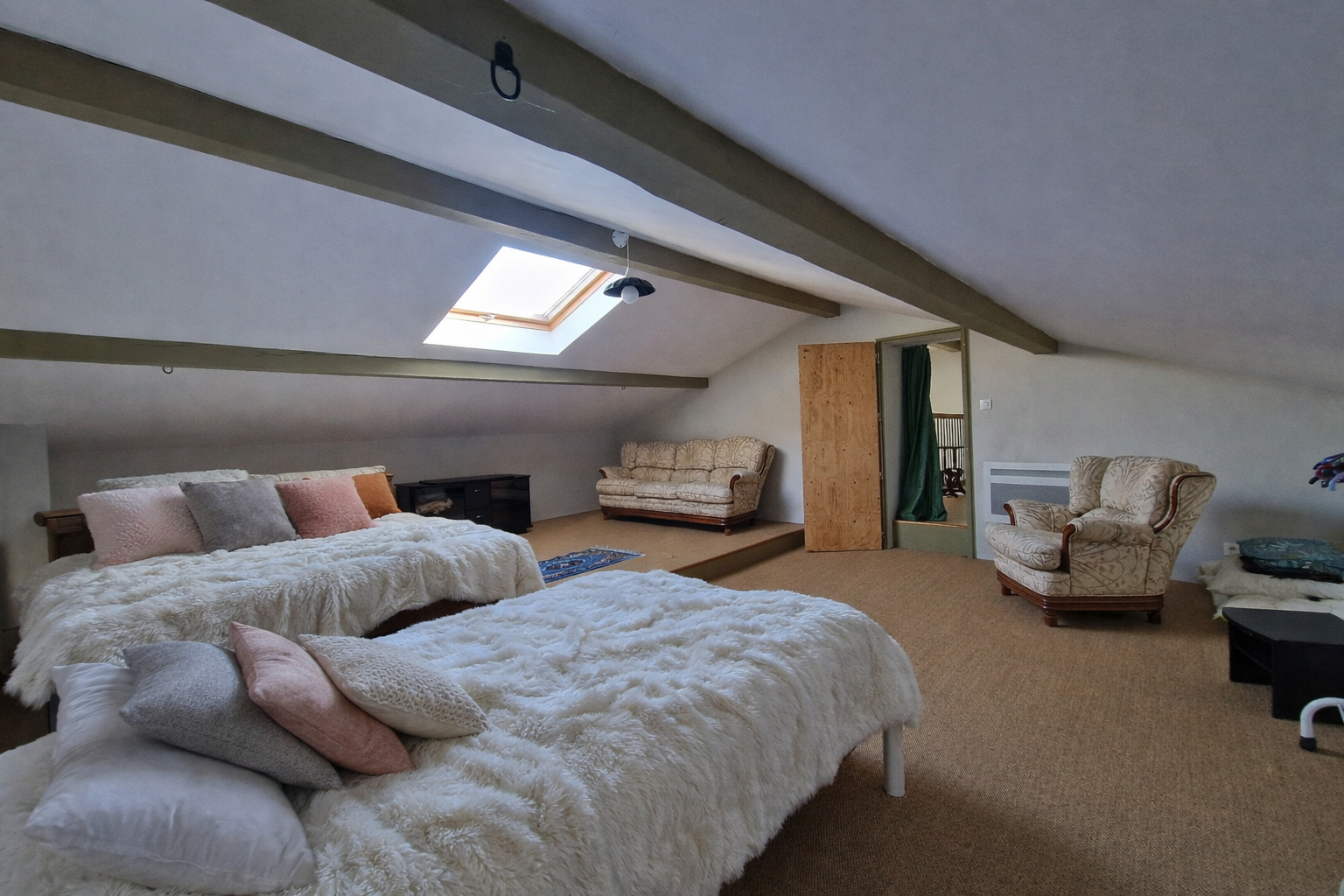 - grande pièce offrant de nombreux couchages possibles.