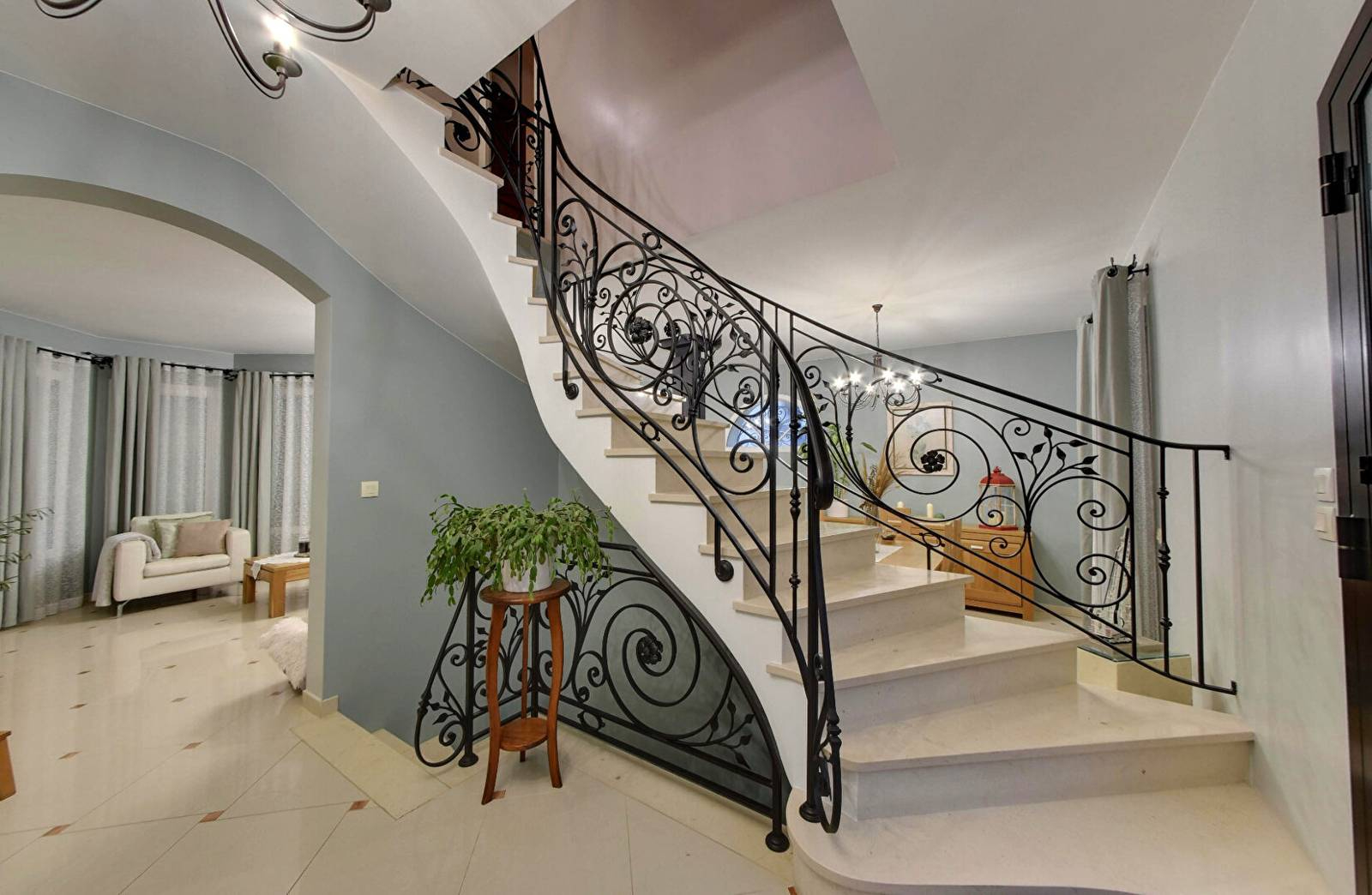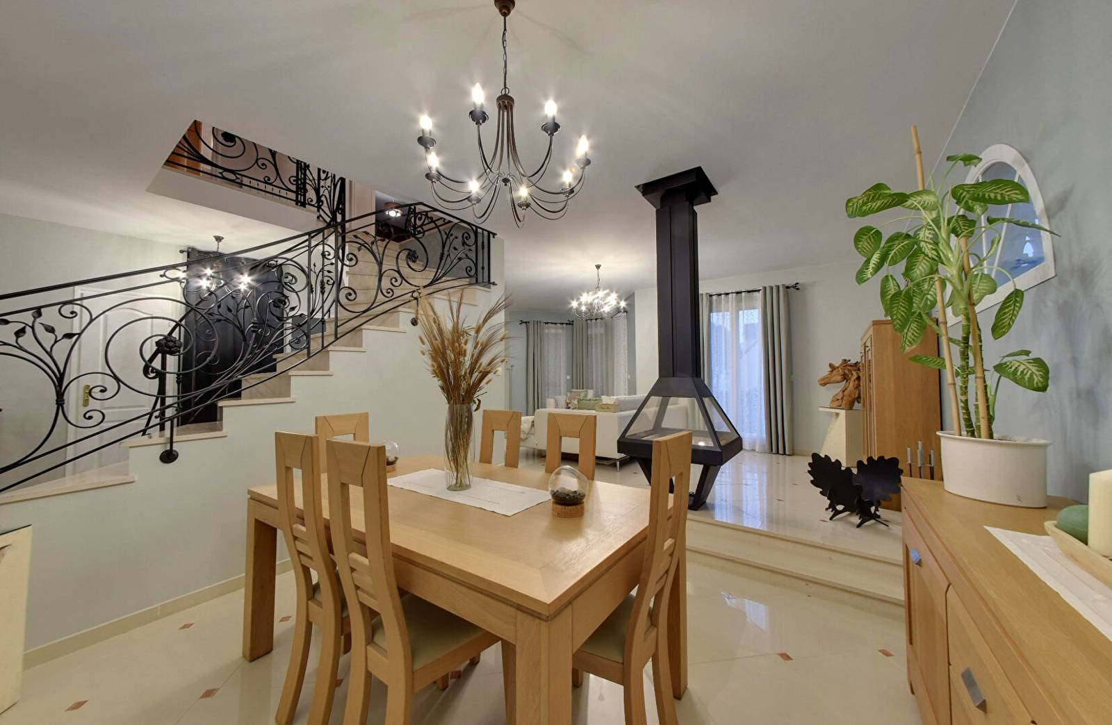 Au rez-de-chaussée, elle dispose d'une entrée cathédrale avec rangement, d'un wc suspendu, d'un vaste séjour de 40 m² avec cheminée centrale, d'un espace Family Room de 23 m² comprenant une cuisine équipée très fonctionnelle et un bel espace pour y prendre ses repas ;