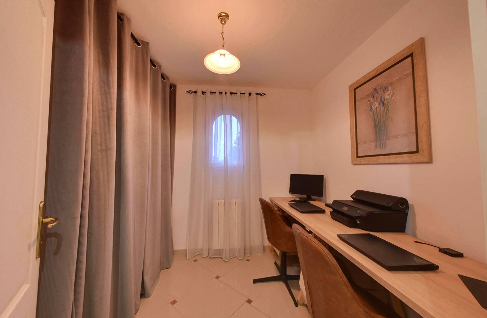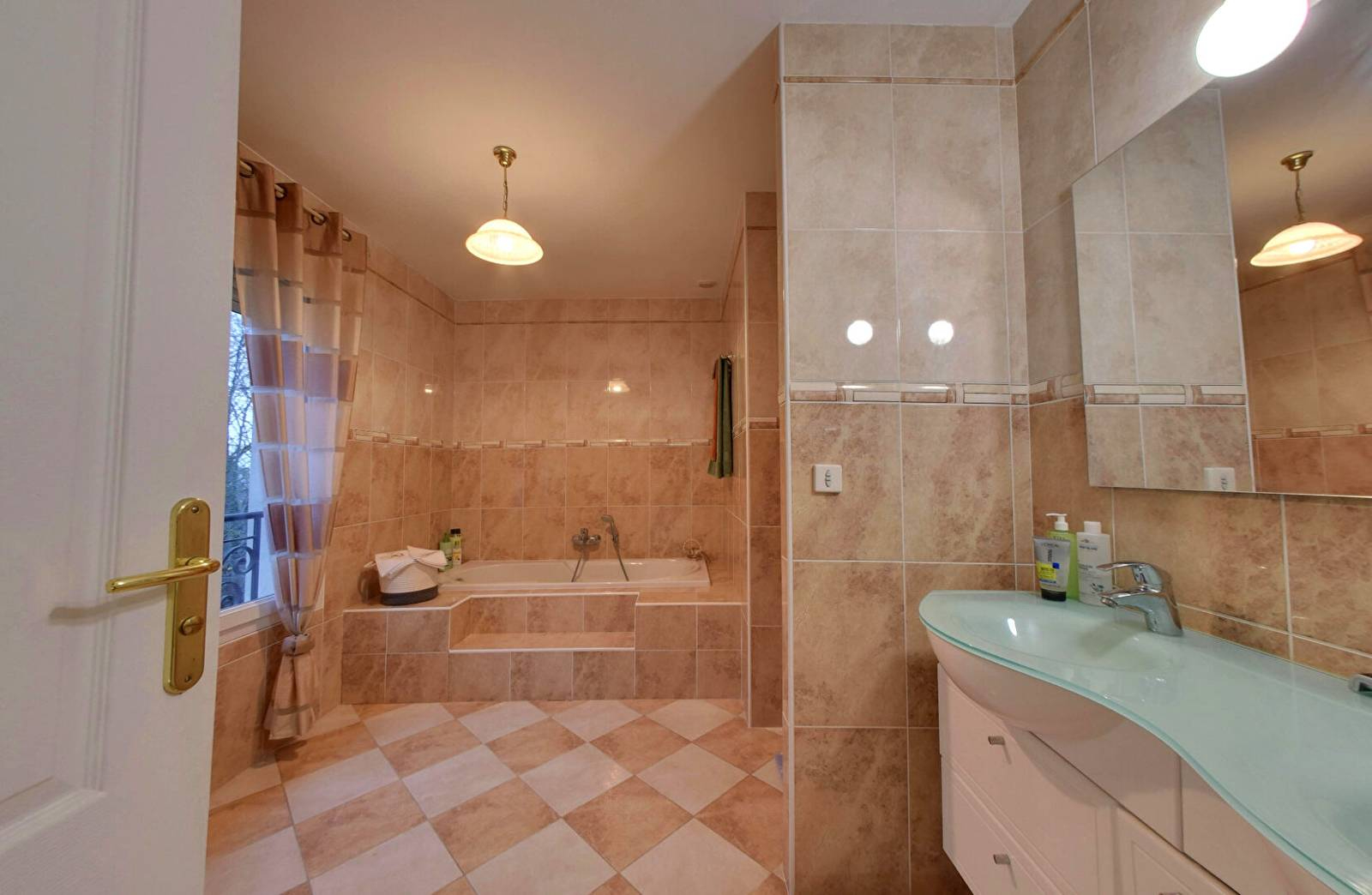 A l'étage, un dégagement dessert trois belles chambres parquetées dont une avec salle d'eau, un bureau, une vaste salle de bains équipée avec baignoire et douche et un second wc séparé.