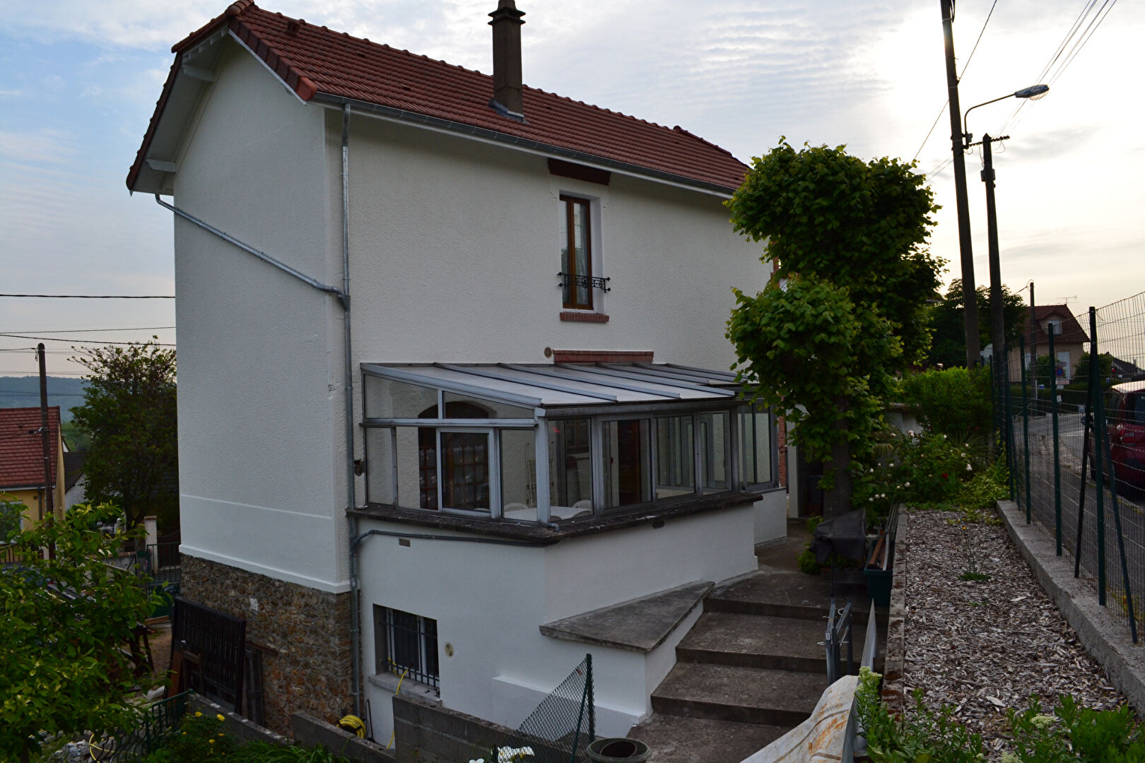 Elle comprend : une entrée, une véranda, une cuisine, un séjour donnant sur le jardin , une salle à manger. A l'étage : 3 chambres, une salle d'eau avec wc, un grenier. Un sous-sol total avec un bureau, une buanderie, une salle d'eau avec wc cave. Terrain de 630 m2. Un atelier indépendant .