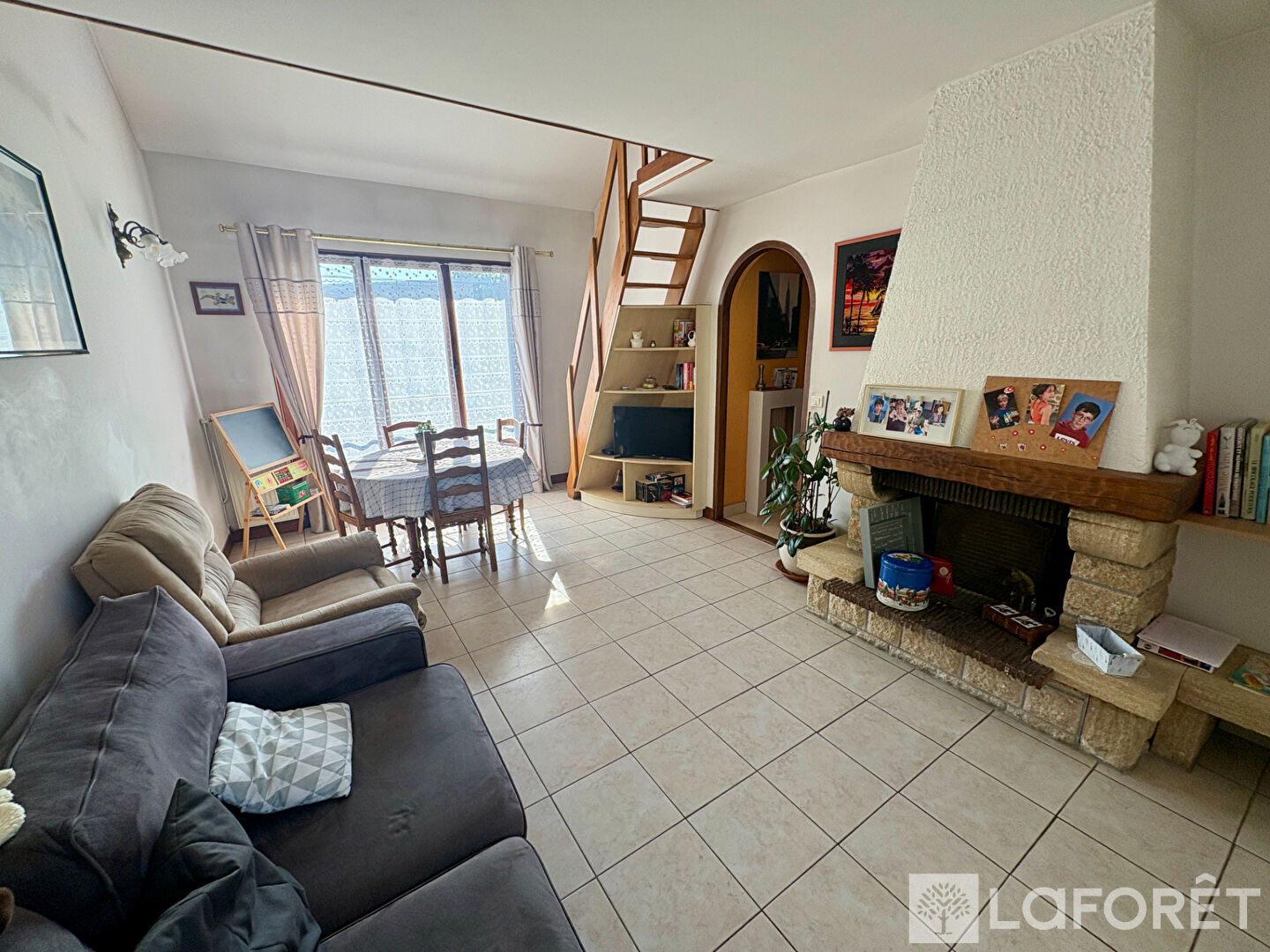 Elle comprend une entrée avec placards, une chambre, une buanderie chaufferie, un garage, à l'étage, un séjour avec cheminée, une cuisine équipée, deux chambres, une salle de bains et un wc. Grenier exploitable.