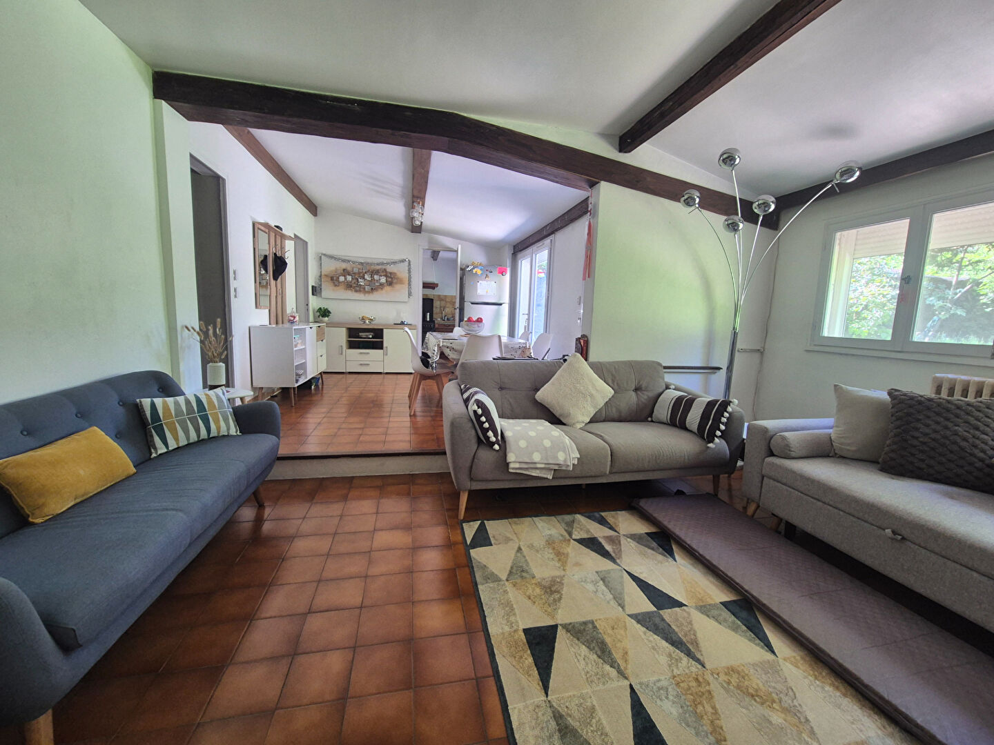 Elle comprend : une entrée, un séjour double avec cheminée, une cuisine de plain pied sur le jardin, 2 chambres, salle d'eau, wc, un garage avec un escalier menant à un bureau . Une dépendance attenante à la maison comprenant un séjour avec coin cuisine, une salle d'eau, wc, et une grande chambre.