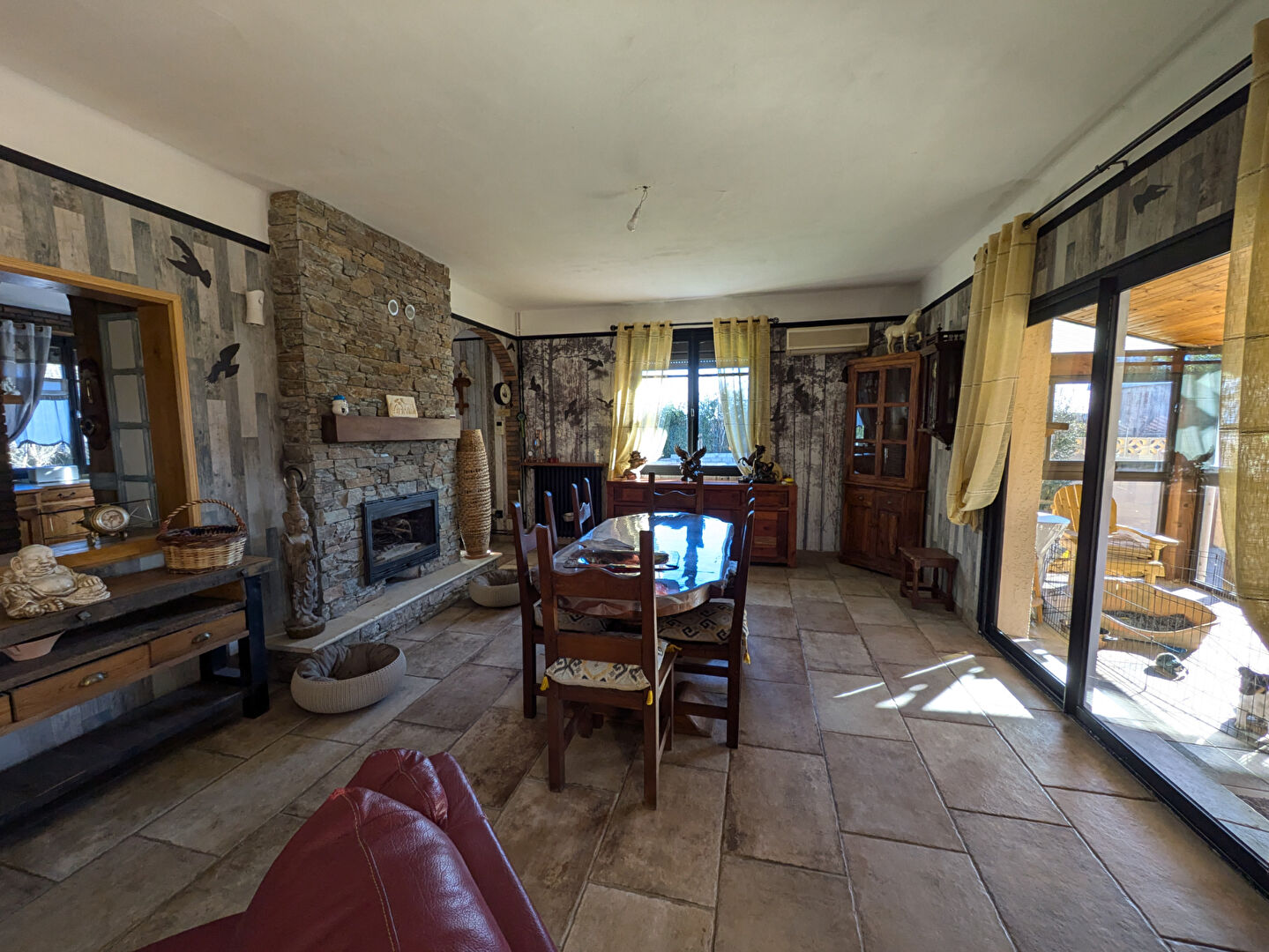 Une spacieuse cuisine indépendante et équipée, ouverte sur une belle pièce de vie avec cheminée.