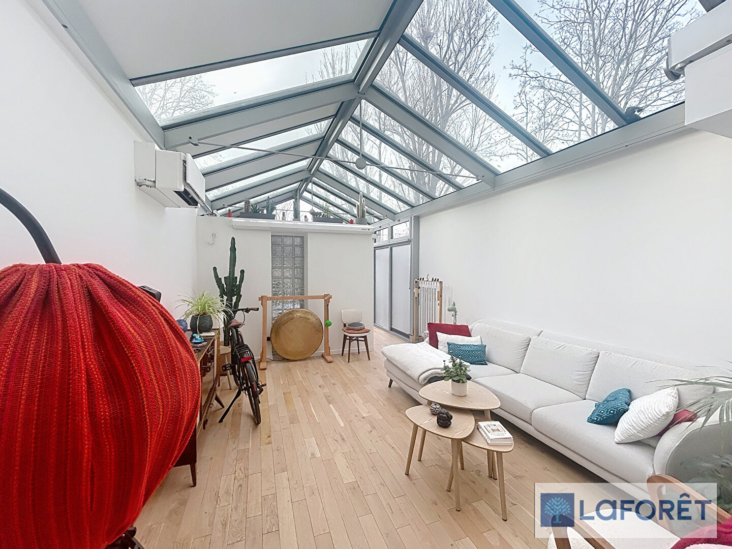 Votre agence Laforêt PANTIN vous présente ce bien rare atypique 4 pièces de 80.13m² dont 33m² de véranda, composé d'un bureau, d'un dressing, d'un wc, d'une SDE, d'une cuisine ouverte sur le séjour double, d'une chambre dans un cube sous la verrière de la véranda donnant sur une terrasse accompagnée de son jardin partagé.