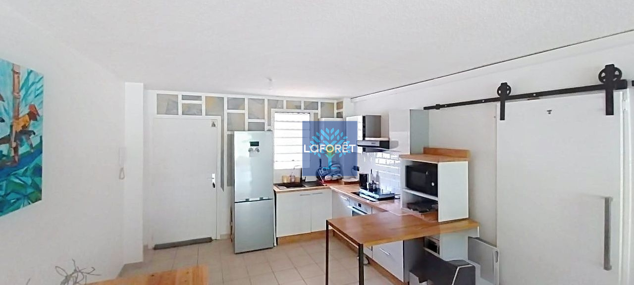 Il offre un séjour lumineux avec cuisine ouverte, une chambre, une salle d'eau avec WC et une agréable terrasse couverte donnant sur le jardin.