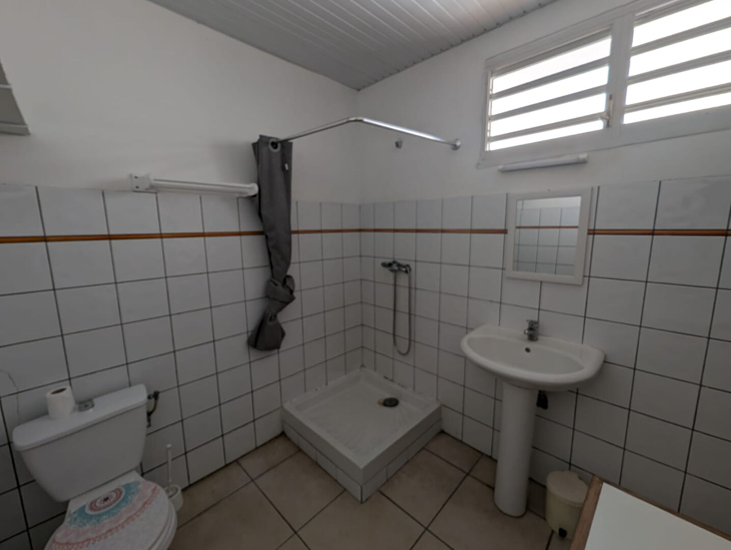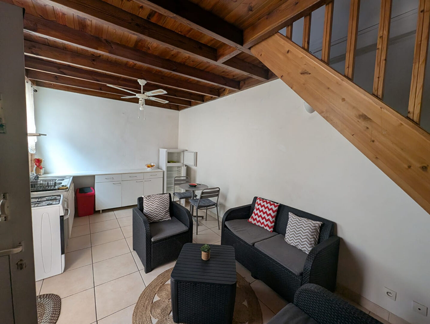 en rez-de-chaussée : un séjour, une cuisine aménagée et une salle d'eau