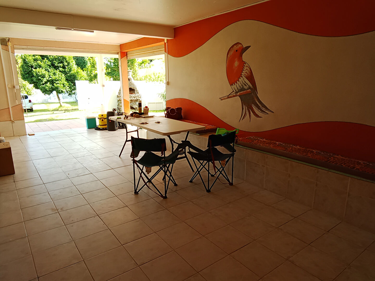 Une magnifique avancée de terrasse non couverte avec son barbecue pierre construit main, un grand jardin, pour tous vos évènements familiaux.