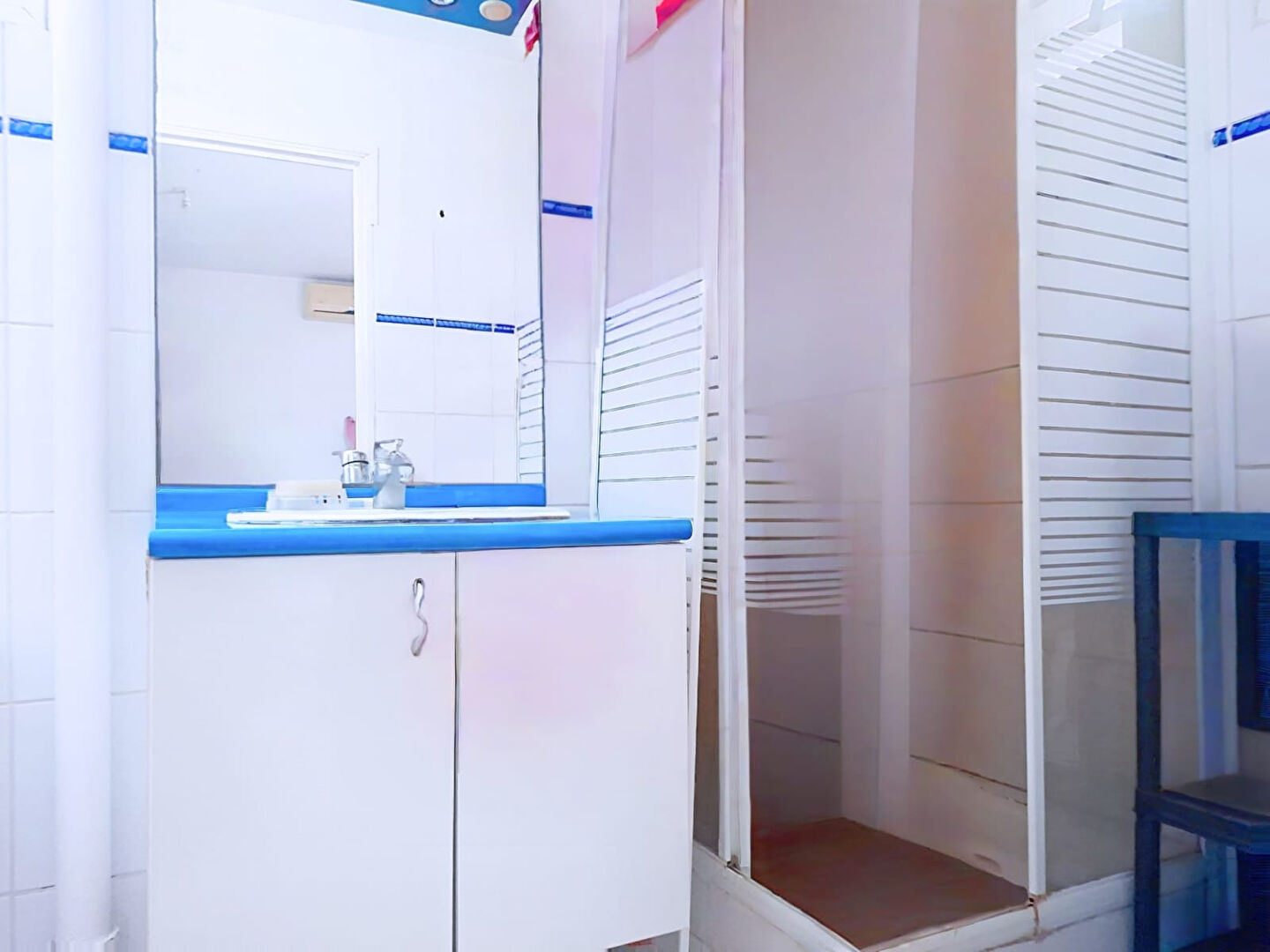 La surface habitable, d'environ 44 m², se compose d'un séjour, d'une cuisine ouverte aménagée et équipée d'une plaque de cuisson électrique, d'une chambre climatisée avec placard intégré, ainsi que d'une salle d'eau avec WC.
