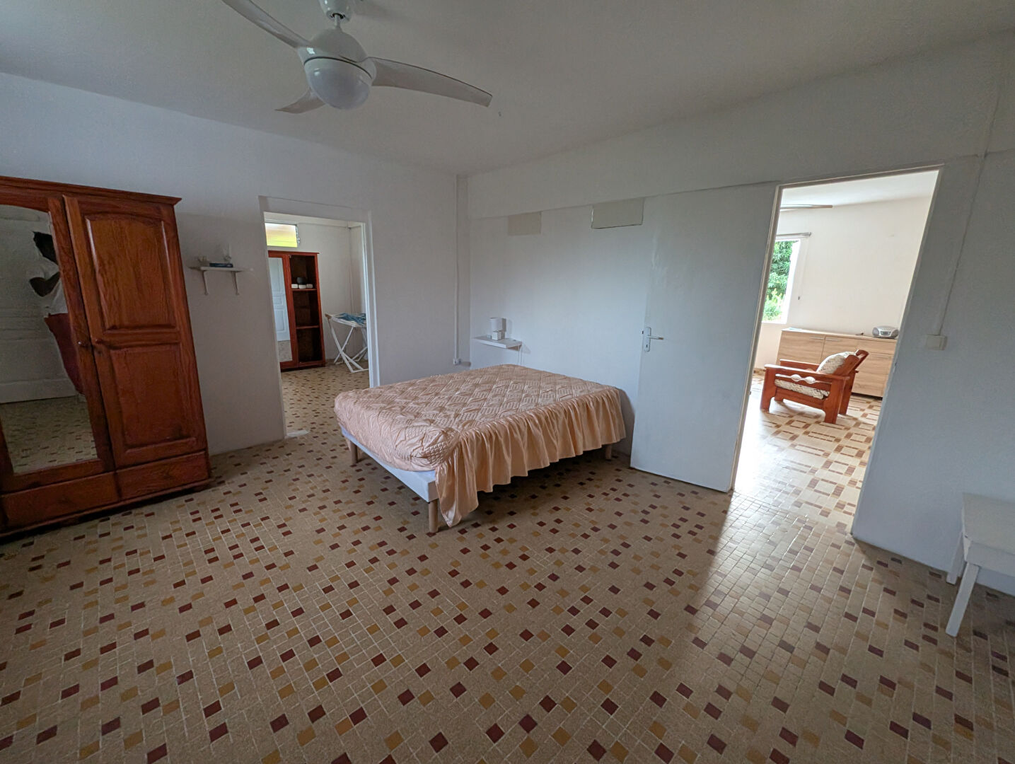 La maison dispose d'une très grande chambre principale dont une climer, d'une salle d'eau rénovée avec soin, d'une cuisine fonctionnelle aux placards fraîchement rénovés et d'un vaste séjour ouvrant sur une belle terrasse.