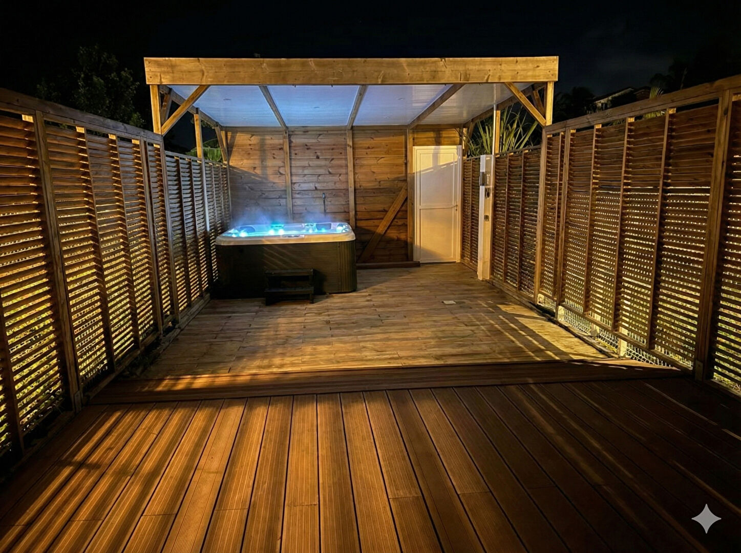 ?D'une surface de près de 74 m² répartie sur deux niveaux, ce logement allie volumes généreux et prestations de standing. L'espace de vie se compose d'un séjour lumineux ouvert sur une cuisine américaine moderne et entièrement équipée. Il se prolonge par une magnifique terrasse privative en deck, véritable pièce de vie extérieure abritant un jacuzzi pour vos moments de détente absolue.