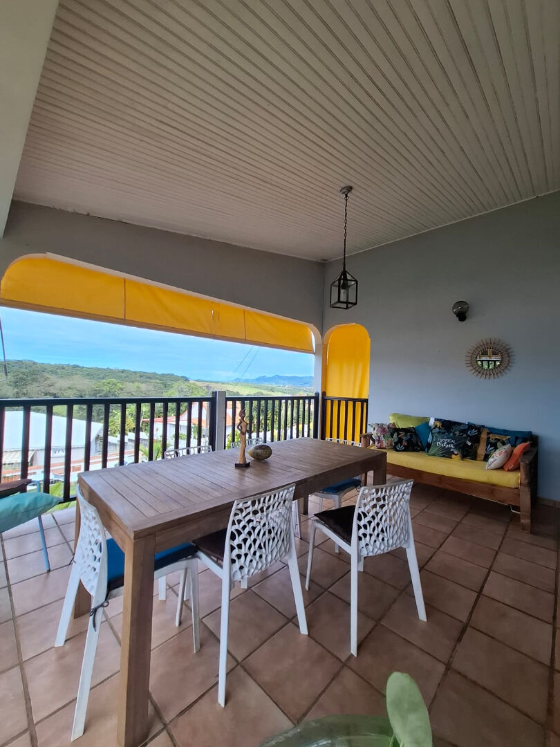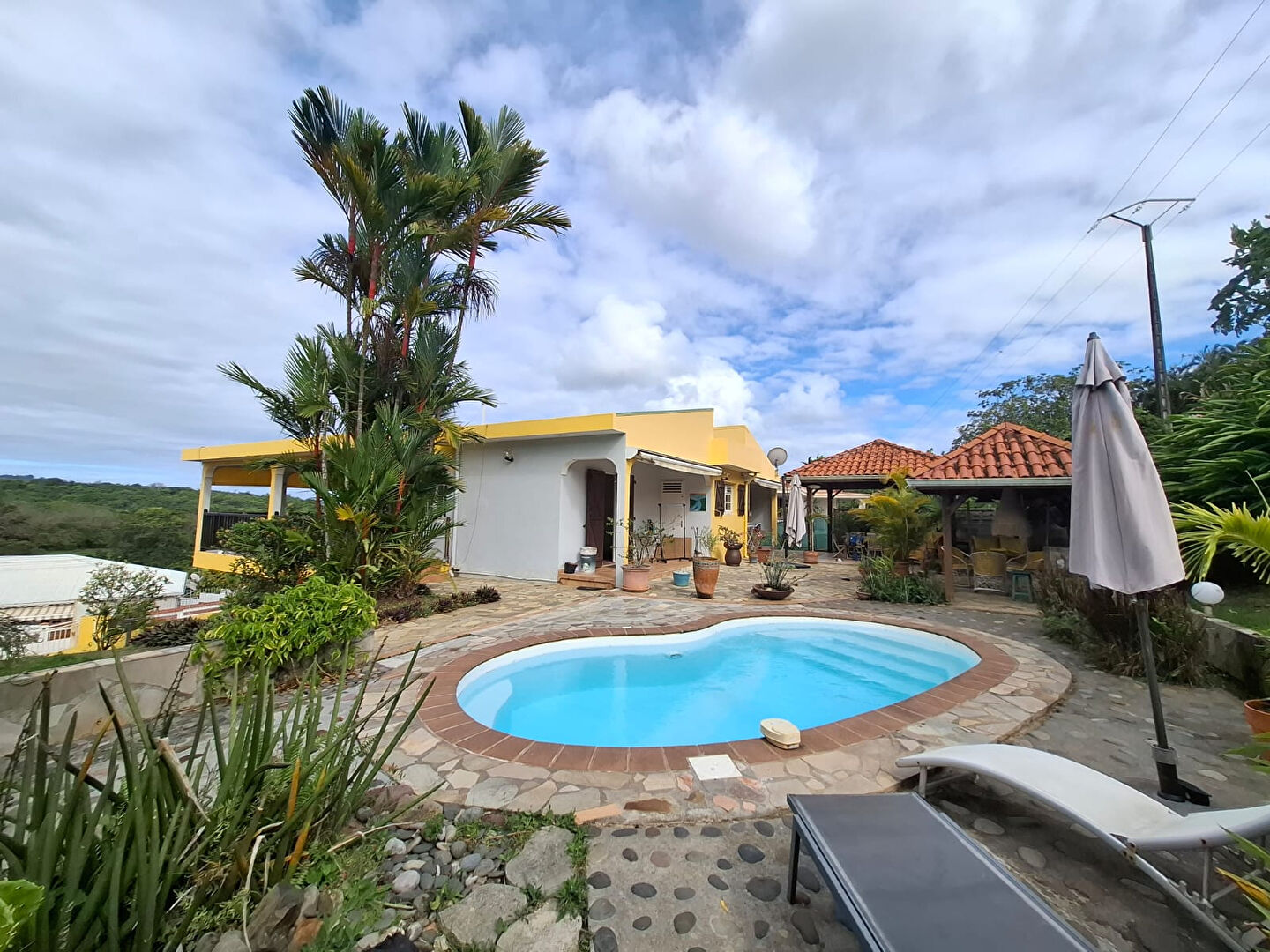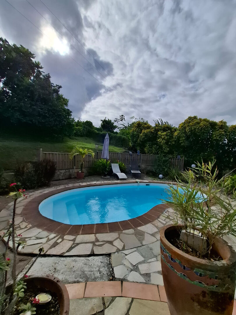 Cette maison des année 80 est nichée dans un écrin de verdures et jouit d'une vue agréable.